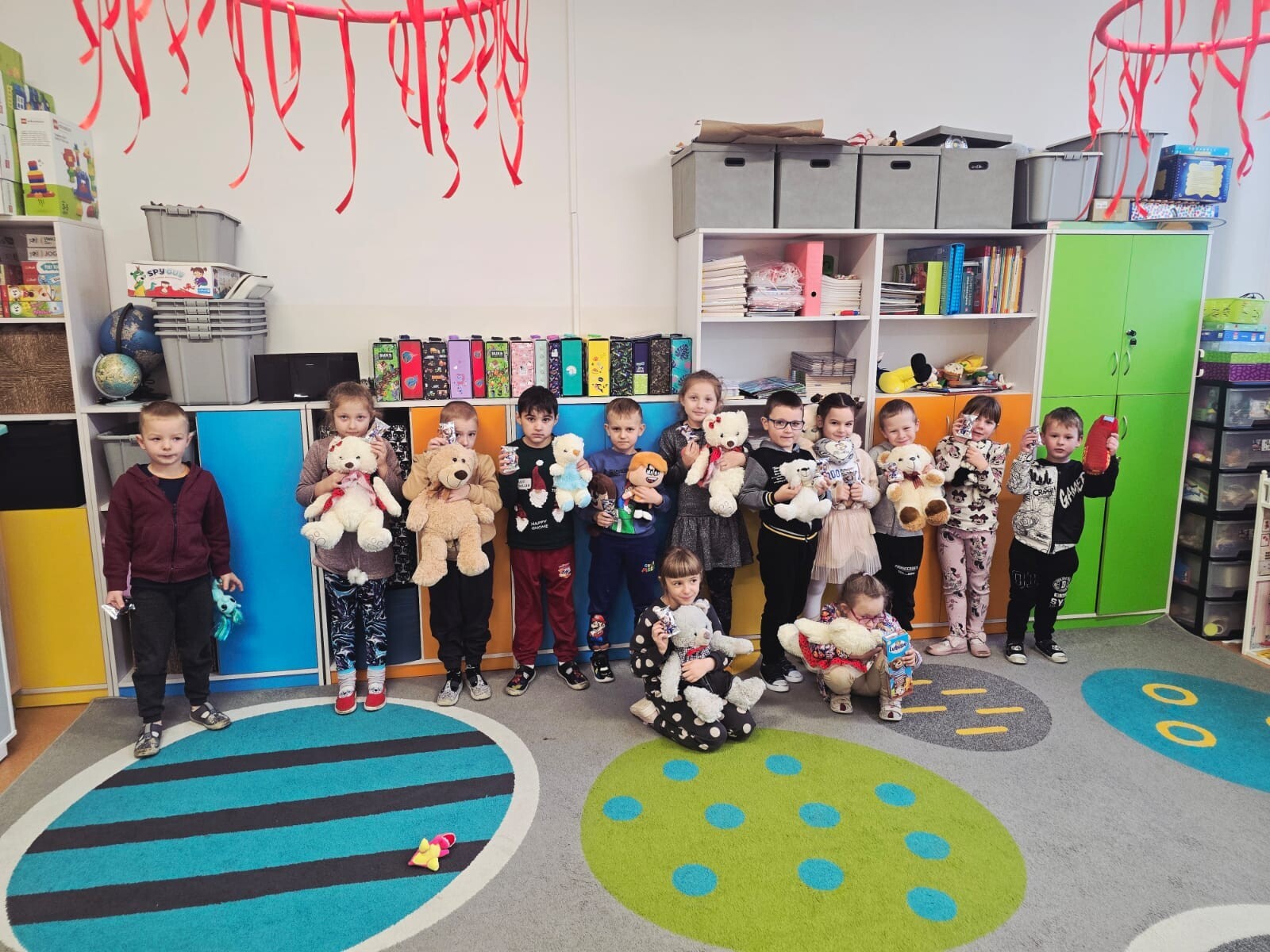 Dzieci w dzisiejszym dniu poznały historię święta, bawiły się przy piosenkach, przygotowano wiele atrakcji: zabawy ruchowe i plastyczne, zgadywanki. Ten dzień pełen był uśmiechu, jednak najwięcej radości sprawił dzieciom sam fakt zaprezetowania swojego misia kolegom i koleżankom. Odbyła się również przygoda z książką, czyli starsi koledzy i koleżanki z klasy V czytali młodszym w bibliotece szkolnej oraz odwiedzili klasę I i oddział przedszkolny. We wszystkich pozycjach książkowych głównym bohaterem był miś. W OP nastąpiła również degustacja czekoladowych Lubisiów.
