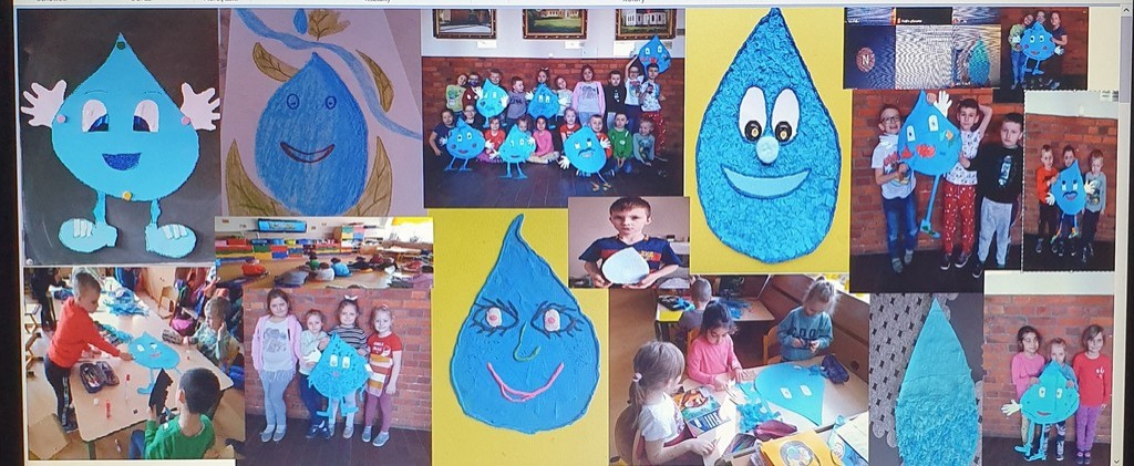 W dniu 22 marca rozpoczęły się obchody Światowego Dnia Wody. W tym roku akcja realizowana była pod hasłem Zróbmy szum wokół wody. Dzięki niej nasi uczniowie poznali wodne wyzwania na świecie. Wiemy doskonale, że woda to najważniejsza substancja na Ziemi. Potrzebują jej wszystkie żywe organizmy zarówno ludzie, jak i rośliny oraz zwierzęta. Większość z nich zaczyna swoje życie w wodzie, a potem mieszka w niej lub w jej pobliżu. Dlatego tak ważne jest, abyśmy dbali o zasoby wodne na naszej planecie. Na znak solidarności uczniowie wykonali pracę plastyczną pod tytułem „Kropelka wody”.