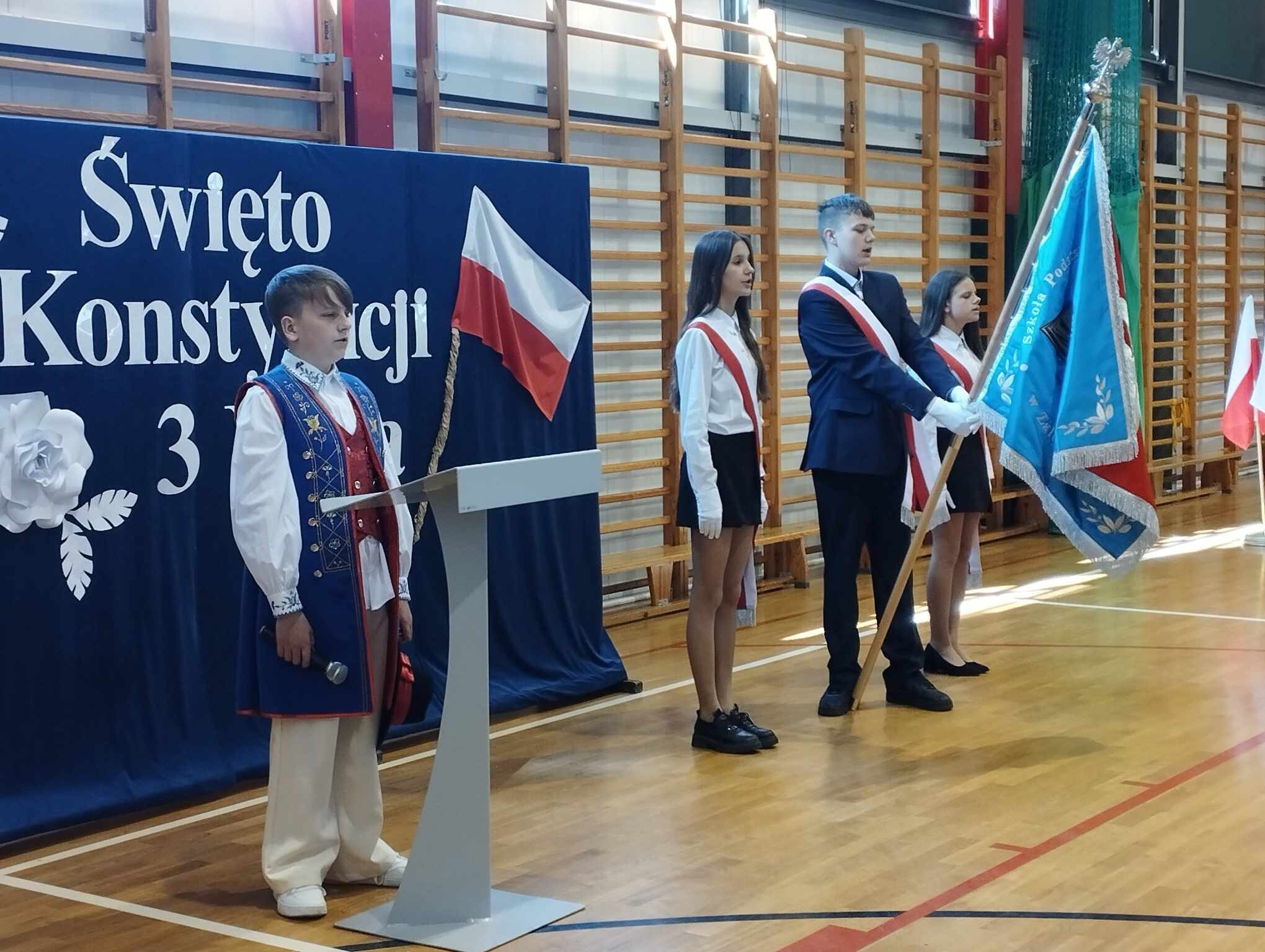 30 kwietnia 2025 r. cała społeczność Szkoły Podstawowej w Zaleskich świętowała 234. rocznicę uchwalenia Konstytucji 3 Maja oraz Święto Flagi. Na początku uroczystości wszystkich zgromadzonych powitała Dyrektor szkoły - pani Joanna Kaczmarczyk, która przybliżyła historię Świąt Majowych. Następnie, w obecności sztandaru szkoły, odśpiewano hymn narodowy i hymn szkoły.
