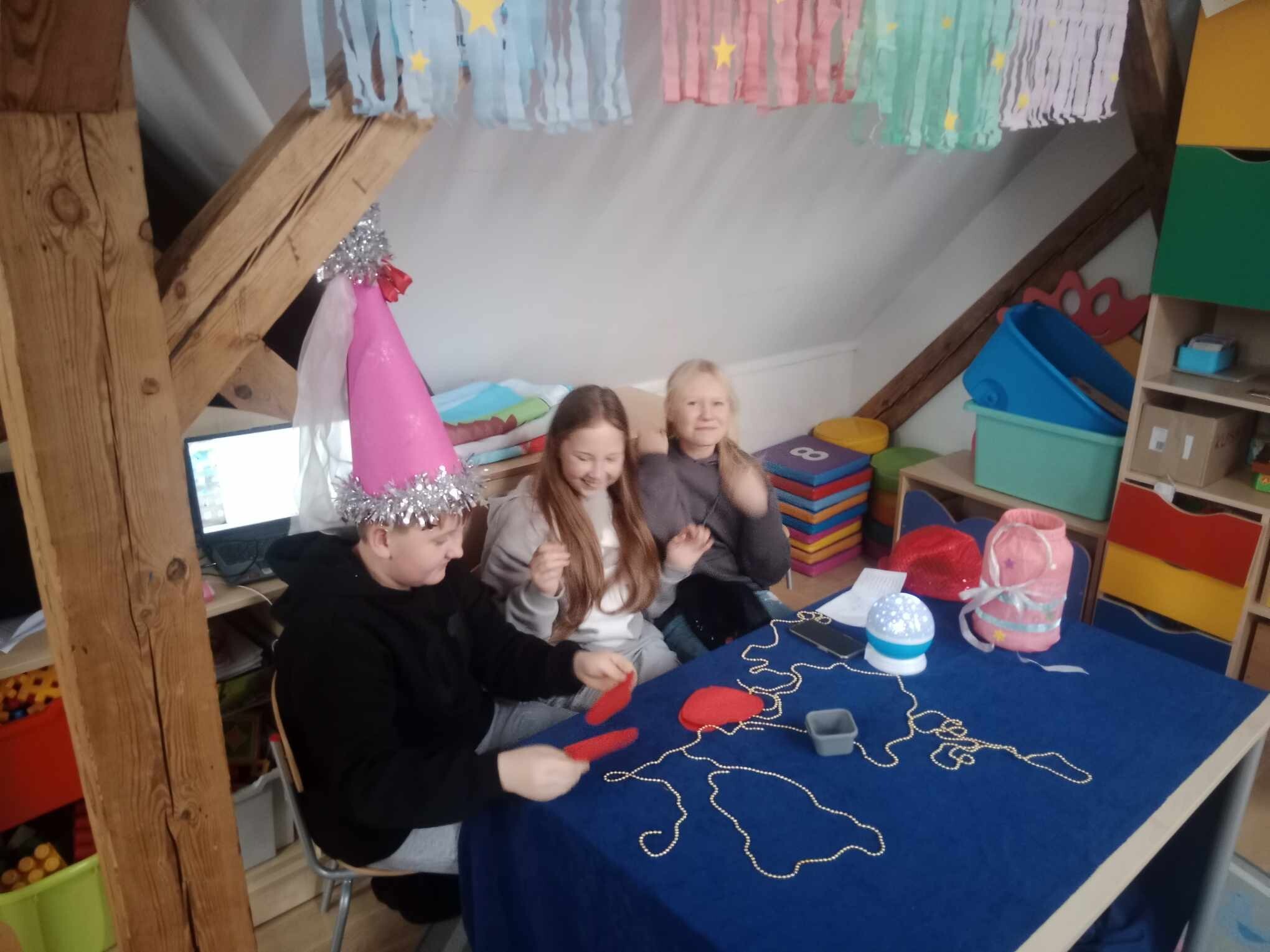 Każdy uczestnik andrzejkowych szaleństw z niecierpliwością przekłuwał papierowe serce, aby odczytać imię swojej sympatii, losował magiczne bileciki z nazwami zawodów, szukał swojej szczęśliwej liczby, a nawet zajrzeć w magiczną szklaną kulę. Katalog wróżb był obszerny i bogaty, a każdy pragnął wywróżyć sobie coś wyjątkowego. Atmosferę dzisiejszego dnia podgrzewała muzyka, która zachęcała do tańca. Uczniowie bawili się wesoło, tworząc niezapomniane wspomnienia.