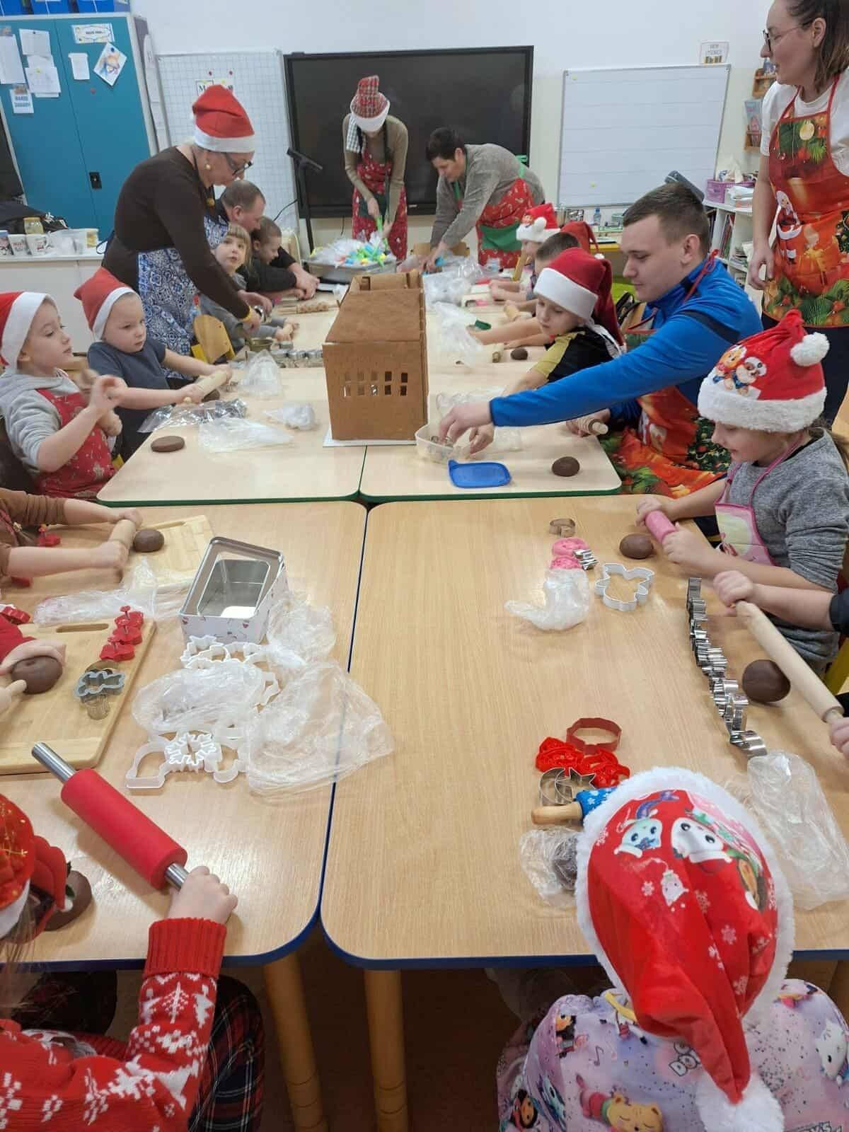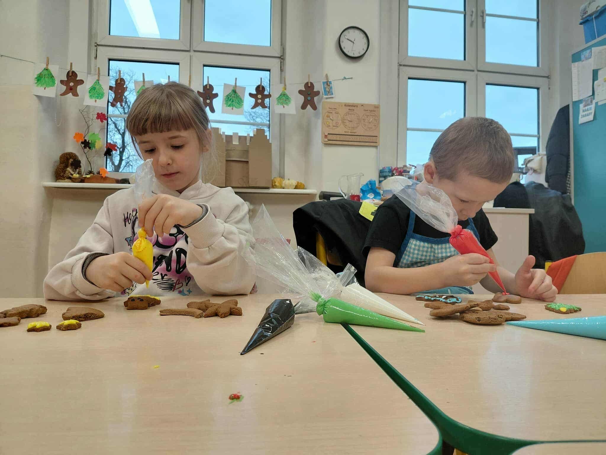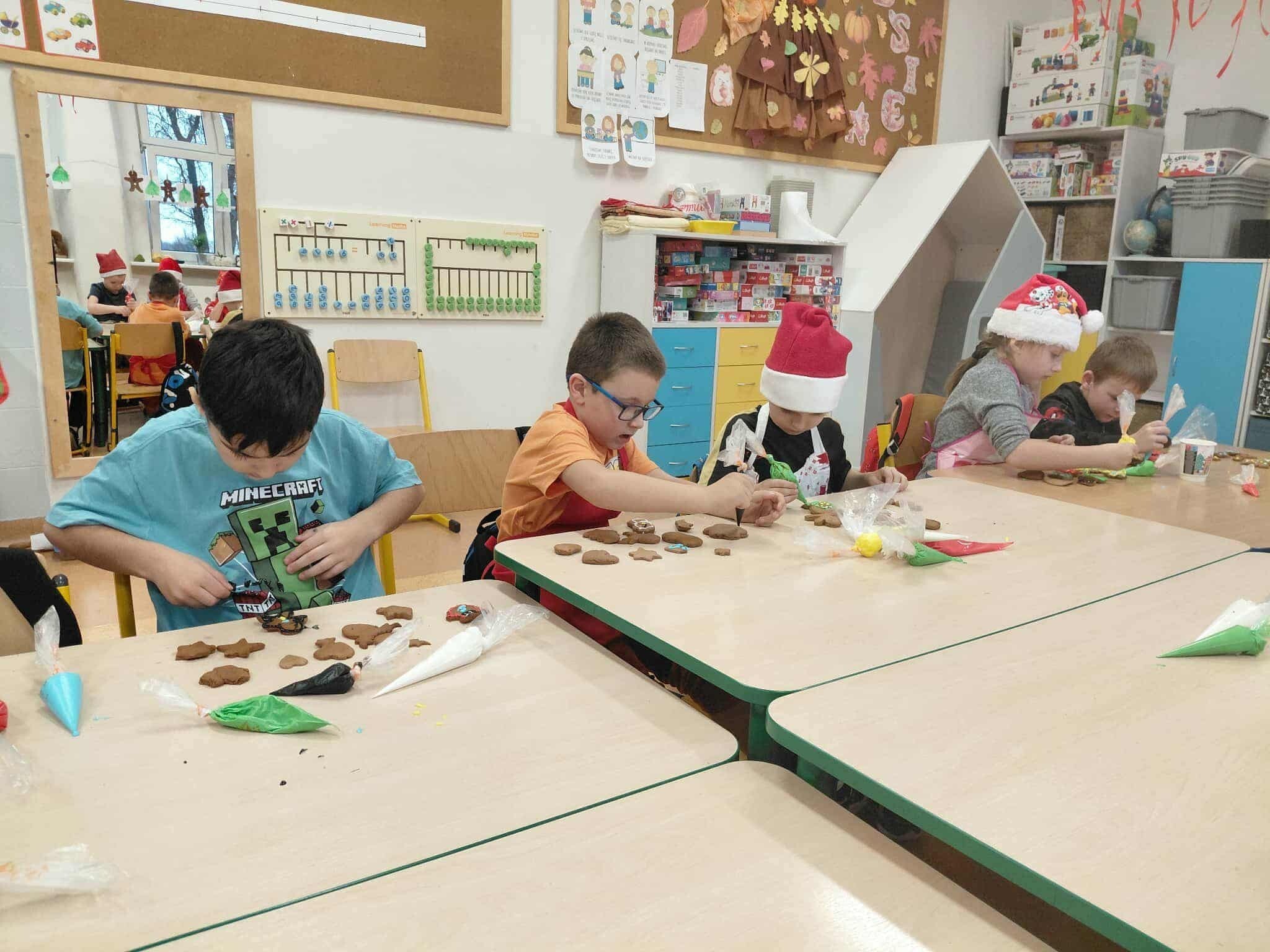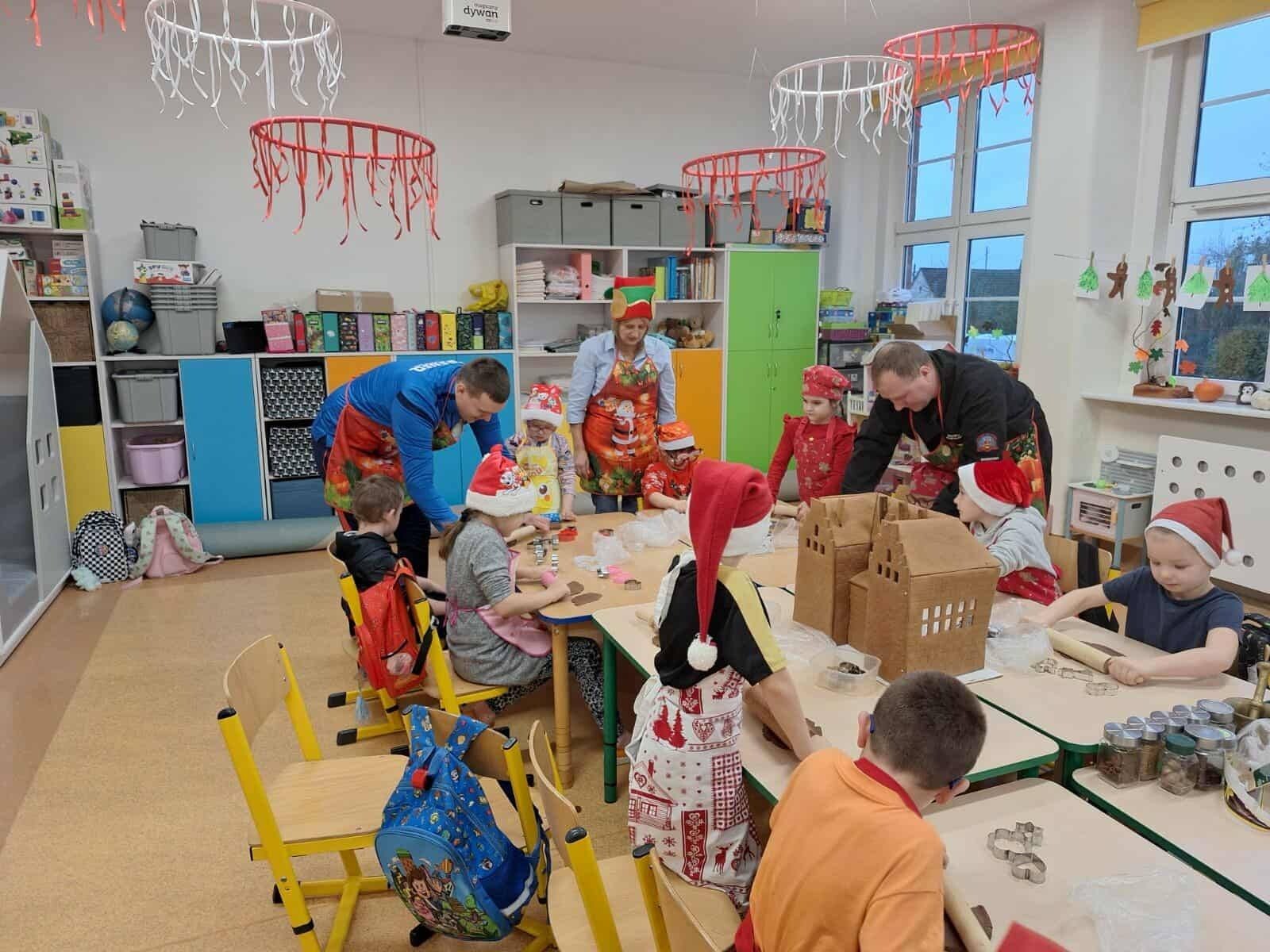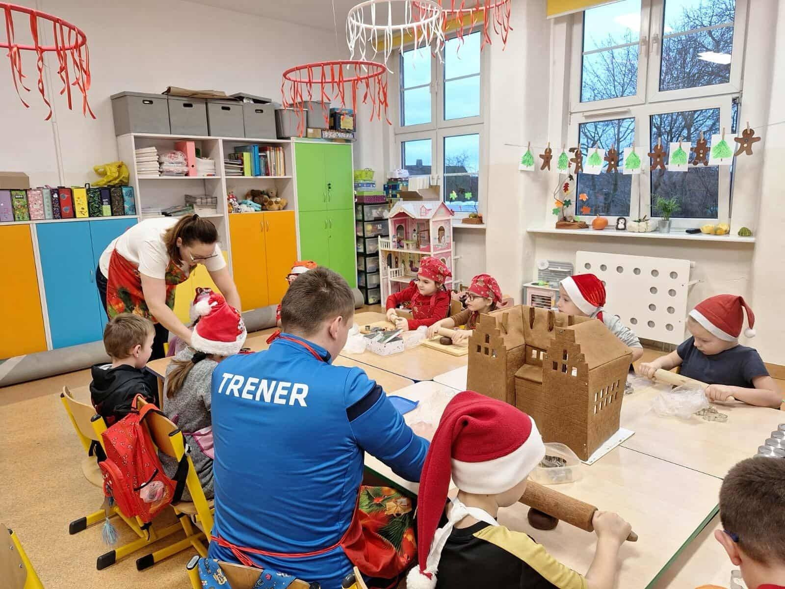 W środę nasz oddział przedszkolny zamienił się w prawdziwą piernikową krainę. W ramach projektu „Szkoła z piernika” dzieci własnoręcznie przygotowały aromatyczne pierniczki, a wyjątkowym finałem warsztatów było powstanie niepowtarzalnej piernikowej szkoły, stworzonej przez panią Kasię Znajdek.
