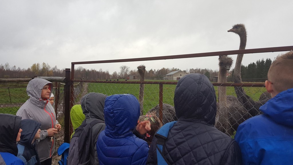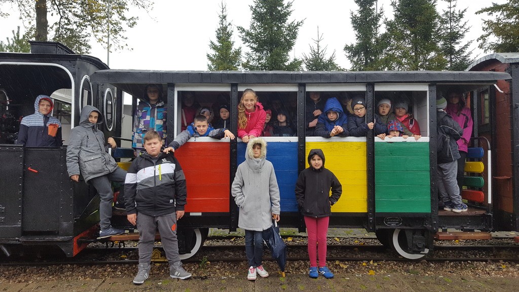 Dnia 28 października 2017 r. odbyła się wycieczka uczniów klas II -VII w ramach zajęć z języka kaszubskiego. Pomimo niesprzyjającej pogody (ulewy i silnego wiatru) uczniowie dzielnie zwiedzali najciekawsze miejsca na trasie Bytów – Kościerzyna – Garczyn. W Bytowie mieli możliwość podziwiania zamku krzyżackiego z XV wieku, w którym zobaczyli wystawy poświęcone „Kulturze materialnej Kaszubów Bytowskich”.Ponadto uczniowie obejrzeli wystawę historyczną poświęconą życiu członków Zakonu Szpitala Najświętszej Marii Panny Domu Niemieckiego w Jerozolimie,  popularnie zwanego Krzyżakami. Kolejnym etapem wycieczki była Kościerzyna leżąca w południowej części Szwajcarii Kaszubskiej. Tutaj uczniowie odwiedzili Muzeum Kolejnictwa, gdzie mogli zobaczyć prostokątną, przelotową halę na cztery parowozy, sale wystawowe i ekspozycje dawnych lokomotyw, wagonów, urządzeń torowych na wolnym powietrzu. Ponadto w pomieszczeniach  muzealnych obejrzeli niespotykane już narzędzia, maszyny, elementy starych mechanizmów, uzupełnione zbiorami dokumentów, pamiątek i modeli. Na kościerskim rynku mogli przyjrzeć się z bliska pomnikowi Remusa, tytułowego bohatera powieści „Życie i przygody Remusa”. Ostatnim przystankiem wycieczki była ferma strusi afrykańskich w Garczynie, gdzie wszyscy zaprzyjaźnili się ze strusiami i poznali ciekawostki dotyczące tych dużych ptaków. Radości było co niemiara. Uczniom najbardziej spodobały się najmniejsze z nich, które miały dopiero dwa tygodnie. Dzień upłynął bardzo szybko i wszyscy wrócili zadowoleni i pełni wrażeń.