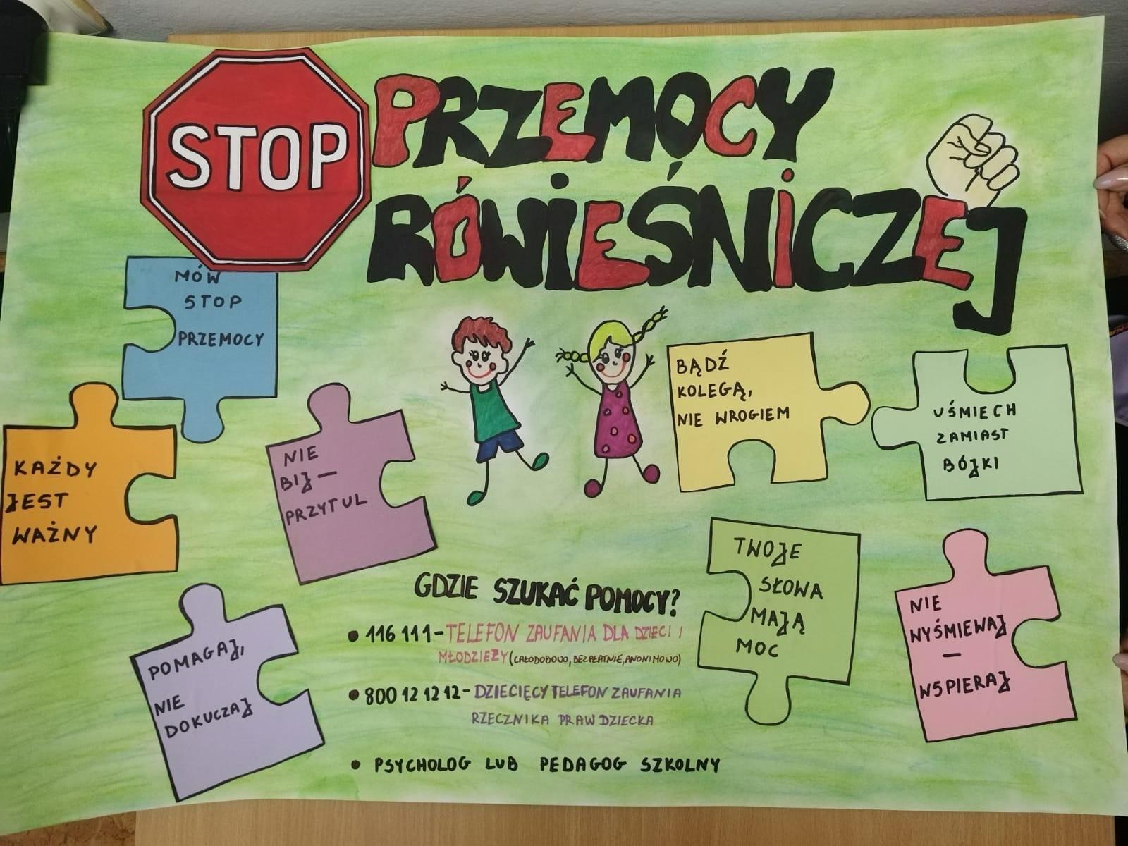 Tydzień ten, został podsumowany konkursem plastycznym dla wszystkich uczniów naszej szkoły pod hasłem „Stop! przemocy rówieśniczej”. Rozstrzygnięcie wkrótce!