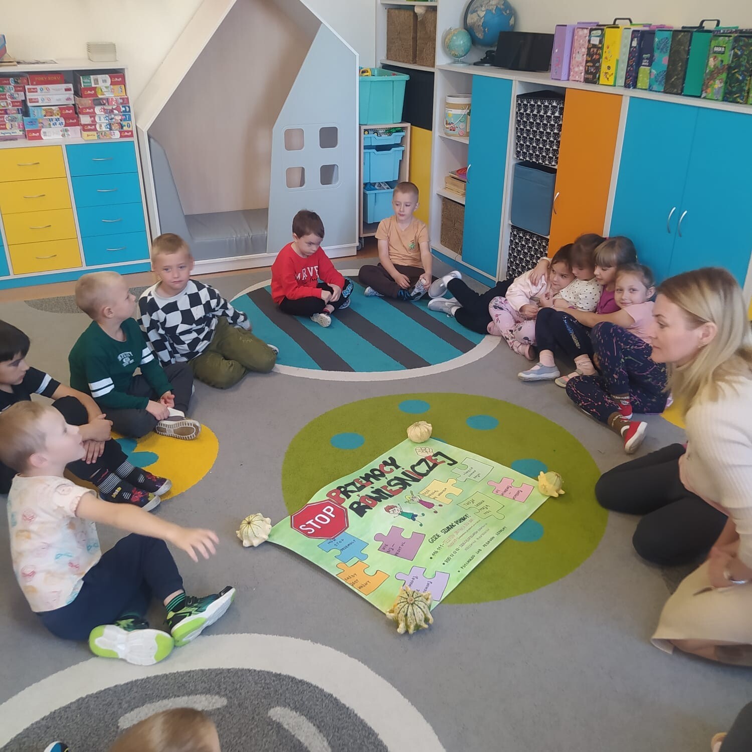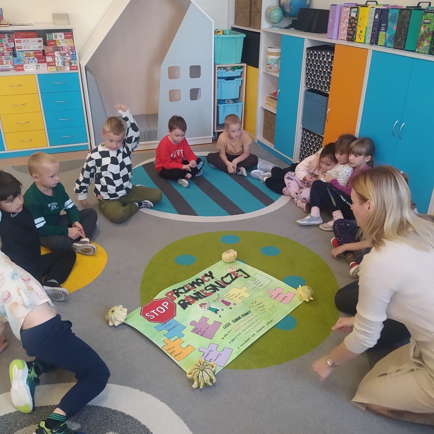 Najmłodsi uczniowie naszej szkoły spotkali się na zajęciach profilaktycznych z panią pedagog, które poświęcony były również tematyce przemocy, jej przeciwdziałaniu, reagowaniu na niewłaściwe zachowanie oraz wspieraniu osób pokrzywdzonych. Był to czas szczerych rozmów o relacjach, emocjach i budowaniu szkoły, w której każdy powinien czuć się dobrze i bezpiecznie.