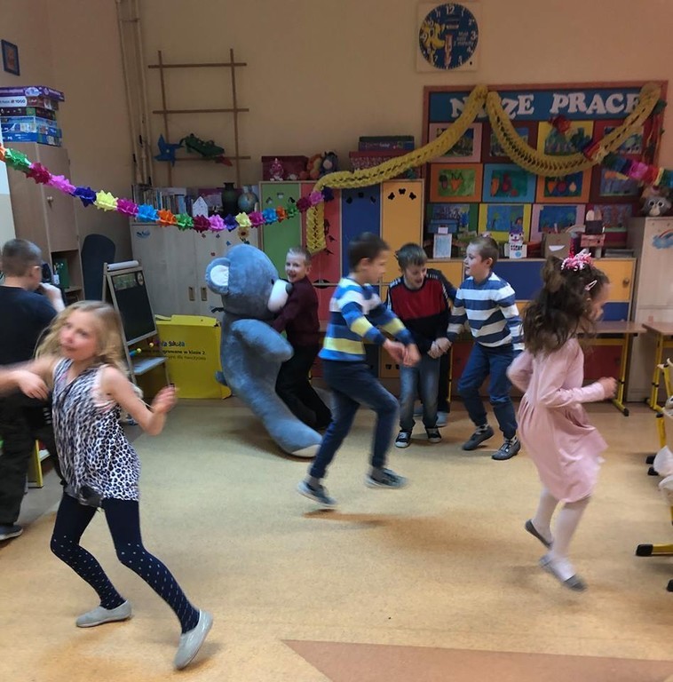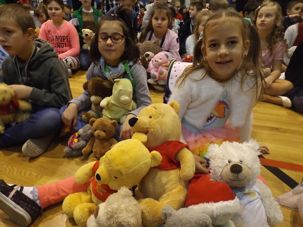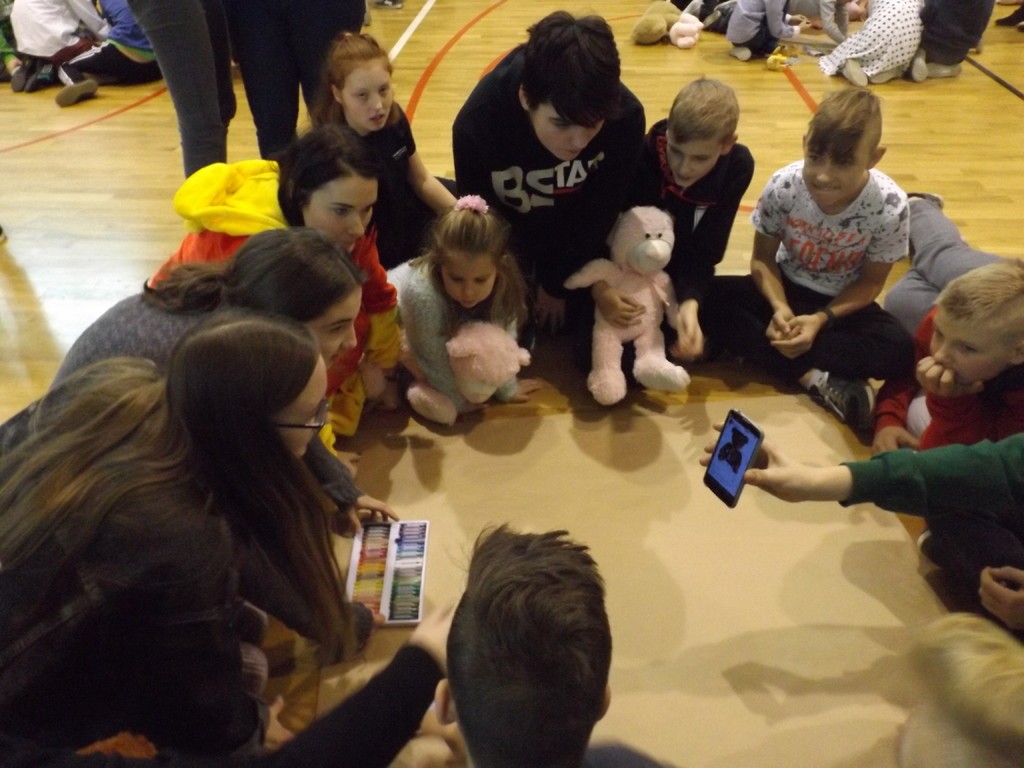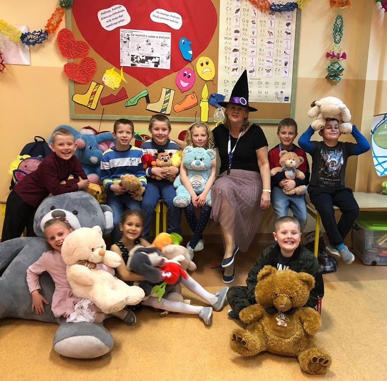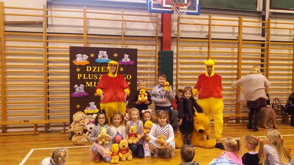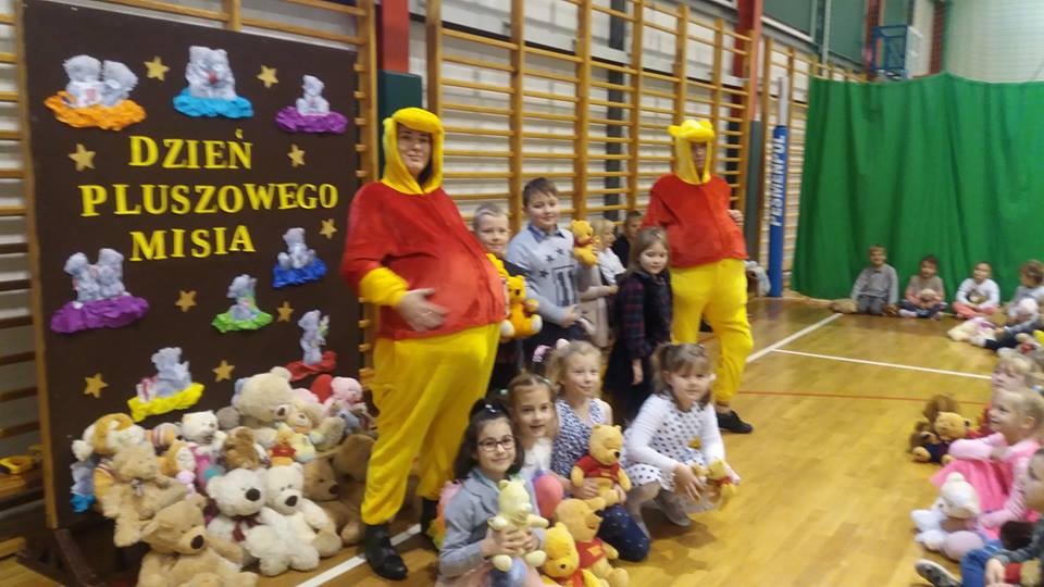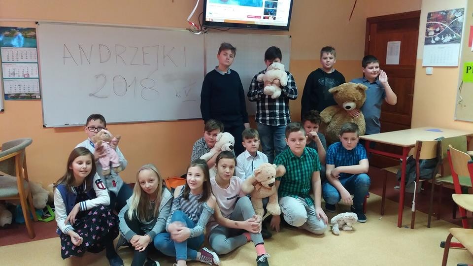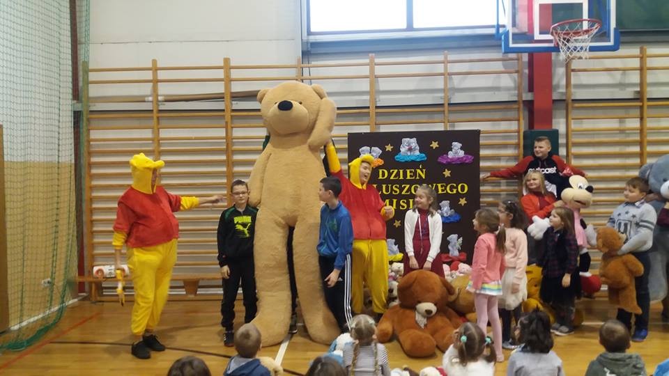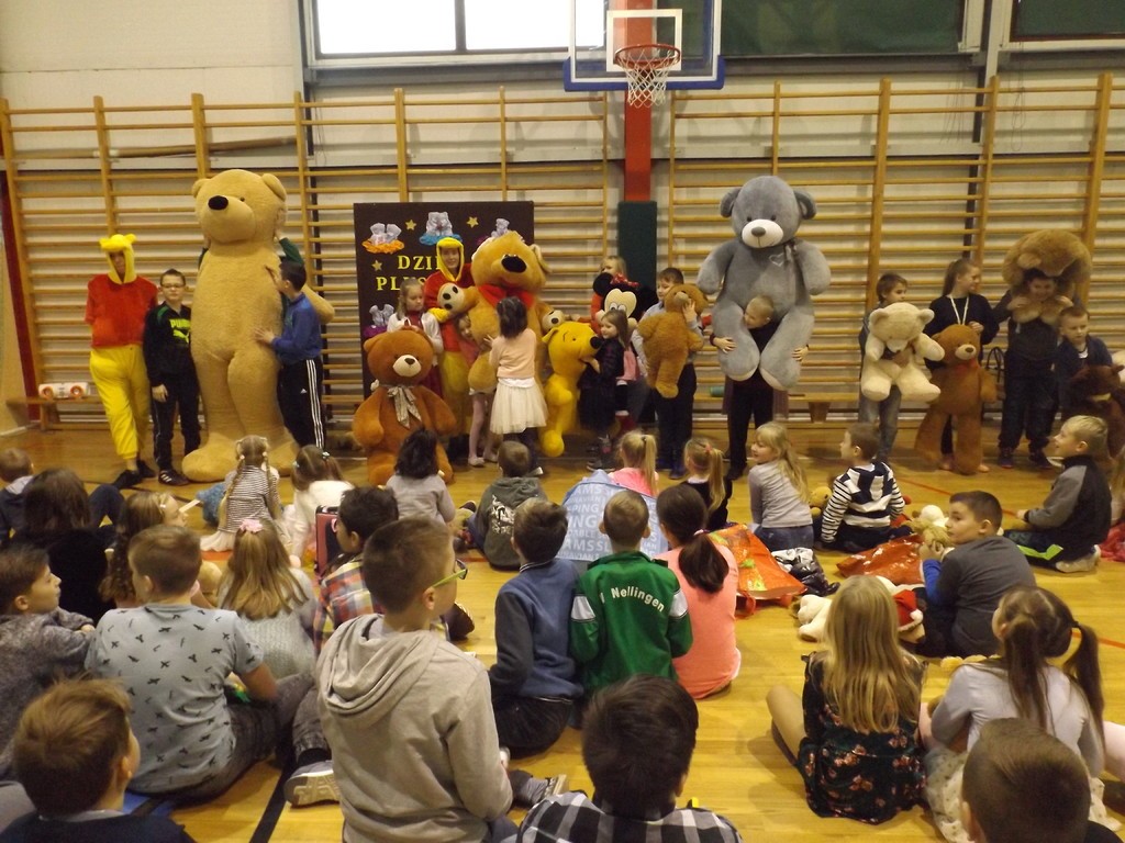 W tym roku 30 listopada w naszej szkole było bardzo miło, gwarno i wesoło. Najpierw spotkaliśmy się na hali sportowej, aby uczcić Światowy Dzień Pluszowego Misia. Każdy uczeń tulił do siebie ulubioną maskotkę. Niektóre zabawki ledwo osiągnęły rozmiar XS, ale były i takie, które z trudem nieśli ich właściciele. Największy miś liczył 2,5 metra długości i wprawił wszystkich w zdumienie. Podczas prezentacji misiowej rodzinki radości nie brakowało. Czas umilały dwa Kubusie Puchatki, które przybyły do nas specjalnie na tę okazję. Każda klasa miała również okazję do zabawy podczas wspólnego malowania portretu pluszaka. Powstały prawdziwe arcydzieła, które przez kolejne dni można było podziwiać na holu szkoły. Po powrocie do klasopracowni rozpoczęły się andrzejki. Wróżby, tańce i poczęstunek, a przede wszystkim wspólnie spędzony czas w gronie kolegów, koleżanek oraz misiów na pewno długo pozostaną w pamięci uczestników.