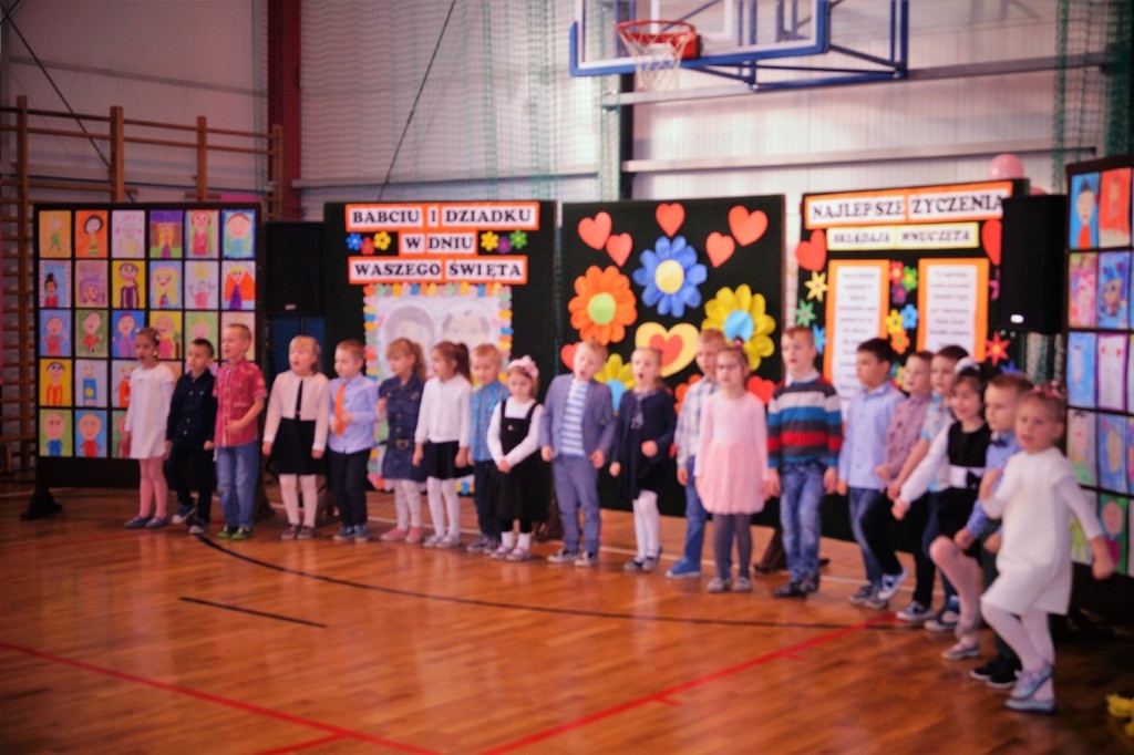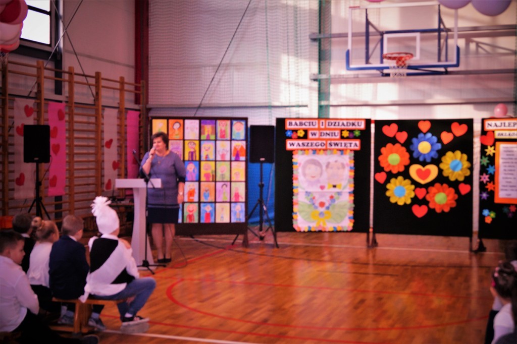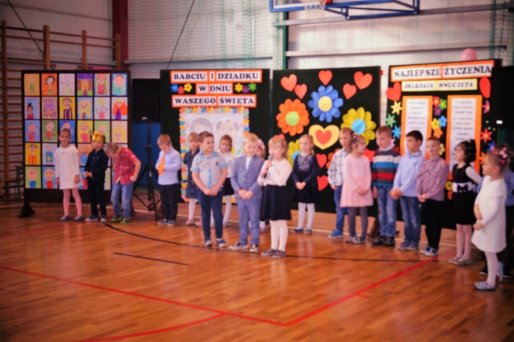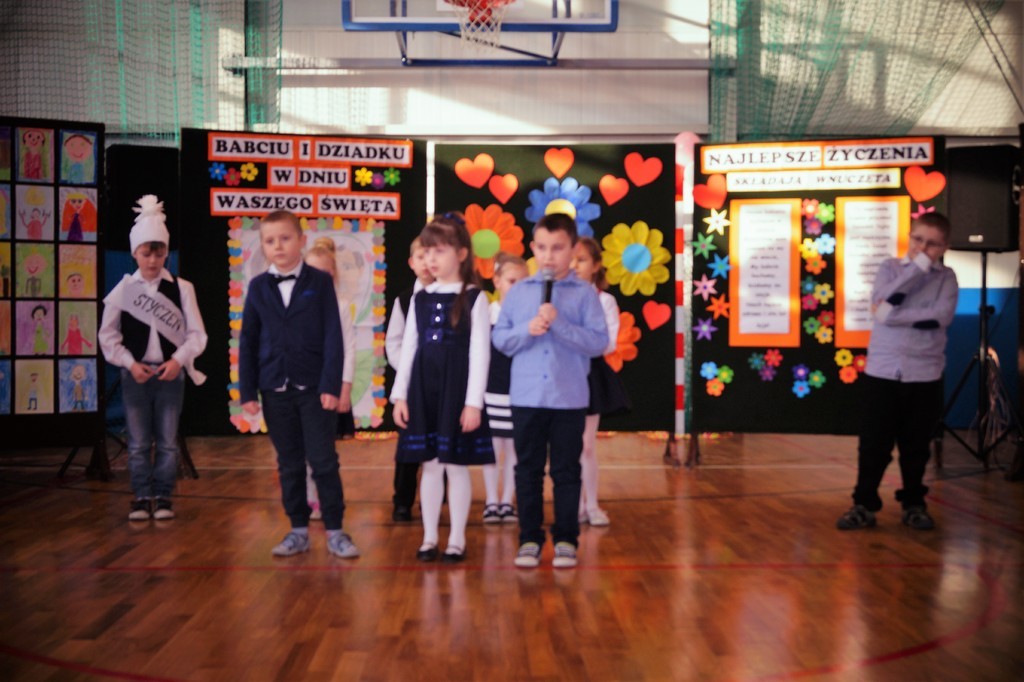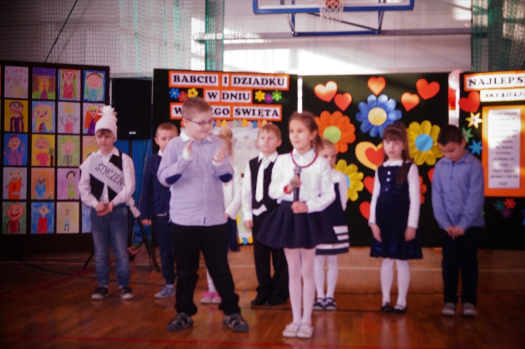 Dzień Babci i Dzień Dziadka to wyjątkowe daty w kalendarzu, jedne z najsympatyczniejszych i najmilszych dni w roku. Pełna wzruszeń uroczystość z okazji tych świąt odbyła się w naszej szkole 22 stycznia 2018 r., a zorganizowana została przez wychowanków oddziału przedszkolnego wraz z wychowawczynią p. Renatą Czerczak oraz uczniów klas I – III z wychowawczyniami: p. Jolantą Adamską, p. Barbarą Kardaś i p. Mariolą Wólczyńską. Aby podziwiać występy swoich kochanych wnuków, liczne grono babć i dziadków przybyło na salę gimnastyczną. Zebranych seniorów i wszystkich gości serdecznie powitała pani dyrektor szkoły p. Maria Siudek. W pięknie udekorowanej sali uczniowie przedstawili program artystyczny. Były piosenki, tańce, okolicznościowe wiersze, życzenia, wspólne zabawy i niespodzianki. Warto zaznaczyć, że każde dziecko - spośród 58 uczniów - wzięło czynny udział w przedstawieniu. Po odśpiewaniu „100 lat” wnuczęta wręczyły babciom i dziadkom własnoręcznie wykonane laurki i upominki. W przygotowanie uroczystości włączyli się rodzice, którzy zapewnili słodki poczęstunek. Po występach nastąpiła chwila dla fotografa, kiedy to każdy wnuk mógł zrobić sobie wspólne zdjęcie z babcią i dziadkiem. Był to niezwykły dzień nie tylko dla dzieci, ale przede wszystkim dla ich najbliższych. Dzień, w którym gościło wiele uśmiechów, wzruszeń i radości… Jedna z sentencji, której autorem jest Gustaw Flaubert, głosi: „Serce jest bogactwem, które się nie sprzedaje ani nie kupuje, ale które się ofiaruje.” Dlatego też dziękujemy wszystkim babciom i dziadkom za bezgraniczną miłość, dobroć i ciepło i życzymy im dużo, dużo zdrowia oraz długich lat życia.