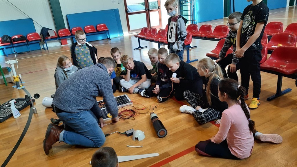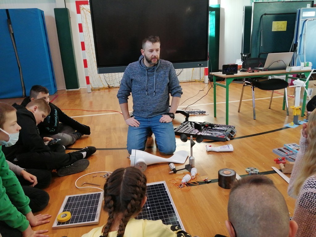 W ubiegłym tygodniu w naszej szkole gościli przedstawiciele firmy realizującej inwestycje w odnawialne źródła energii. Dzięki nawiązanej współpracy uczniowie z klas IV – VIII uczestniczyli w warsztatach o energetyce odnawialnej, składających się z części teoretycznej i praktycznej. Podczas zajęć zaprezentowano korzyści płynące z inwestycji w farmy wiatrowe oraz panele fotowoltaiczne. Omówiono kwestie poszanowania i ochrony środowiska przy projektowaniu i budowie OZE. Uczniowie mieli możliwość wzięcia udziału w dyskusji na temat wpływu kopalni odkrywkowych na środowisko i klimat oraz miejsc instalacji farm wiatrowych. Dokonali odczytów wskazań ze stacji meteo w 3 wybranych miejscach, a następnie porównali parametry. Uczestnicy warsztatów poznali również zasady działania turbiny wiatrowej i korzystając z instrukcji, własnoręcznie złożyli jej model. Podczas bardzo interesujących zajęć uczniowie zdobyli wiedzę o odnawialnych źródłach energii. Być może któryś z nich w przyszłości zapragnie zostać specjalistą w tej branży.
