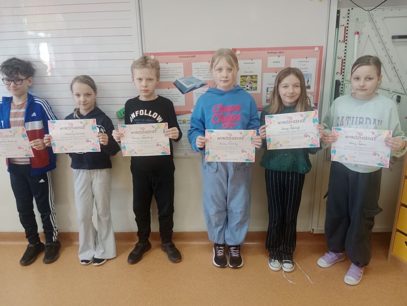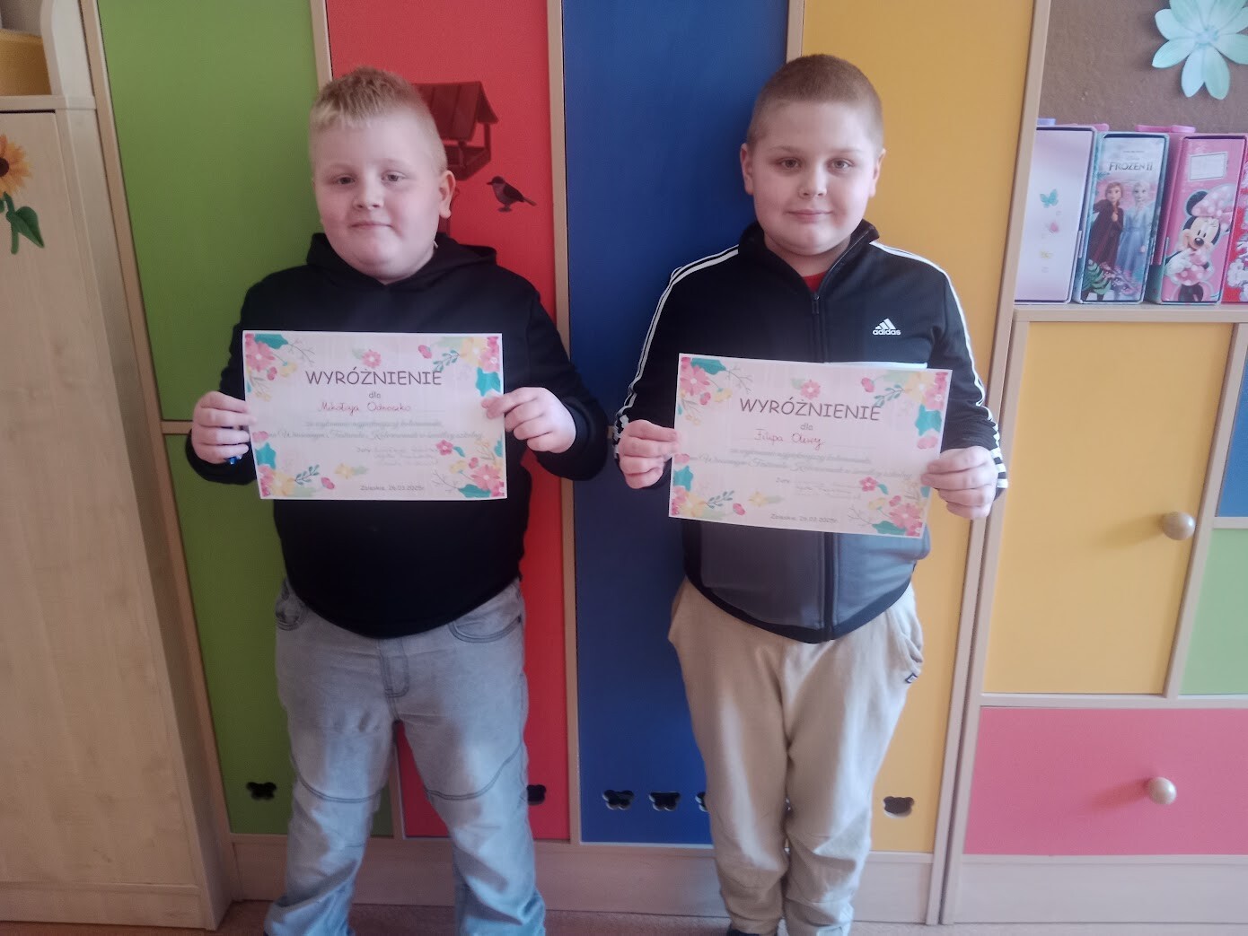 Każdy z uczniów otrzymał medal za uczestnictwo oraz małą, słodką nagrodę. Natomiast dzieci, które wykazały się niezwykłą starannością, wrażliwością estetyczną i plastyczną, otrzymały wyróżnienia oraz nagrody specjalne przygotowane przez panie: Agatę i Ulę.