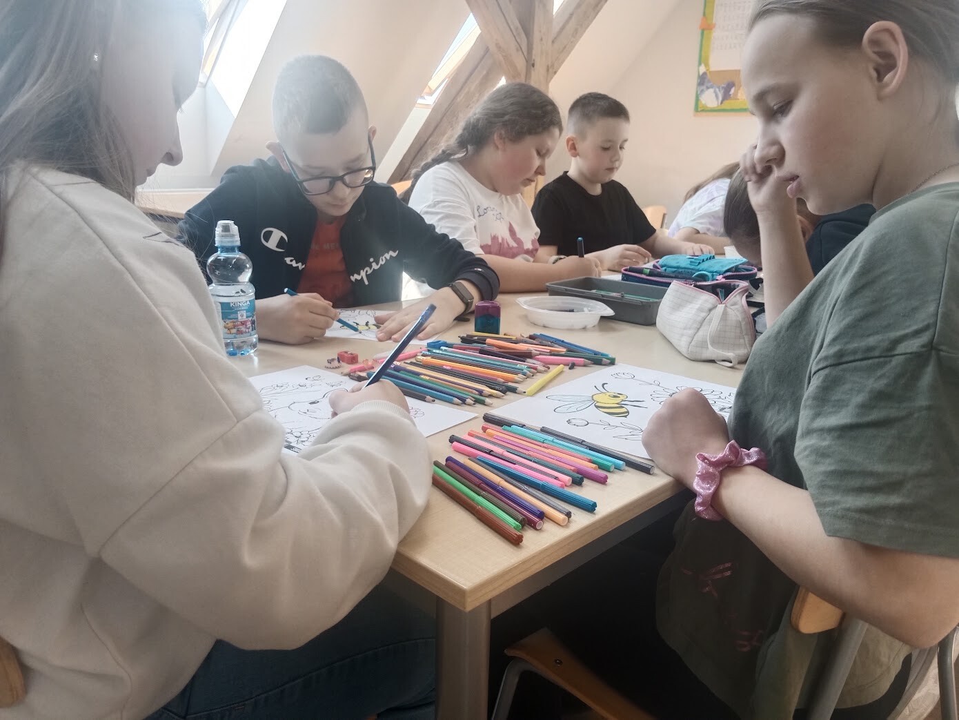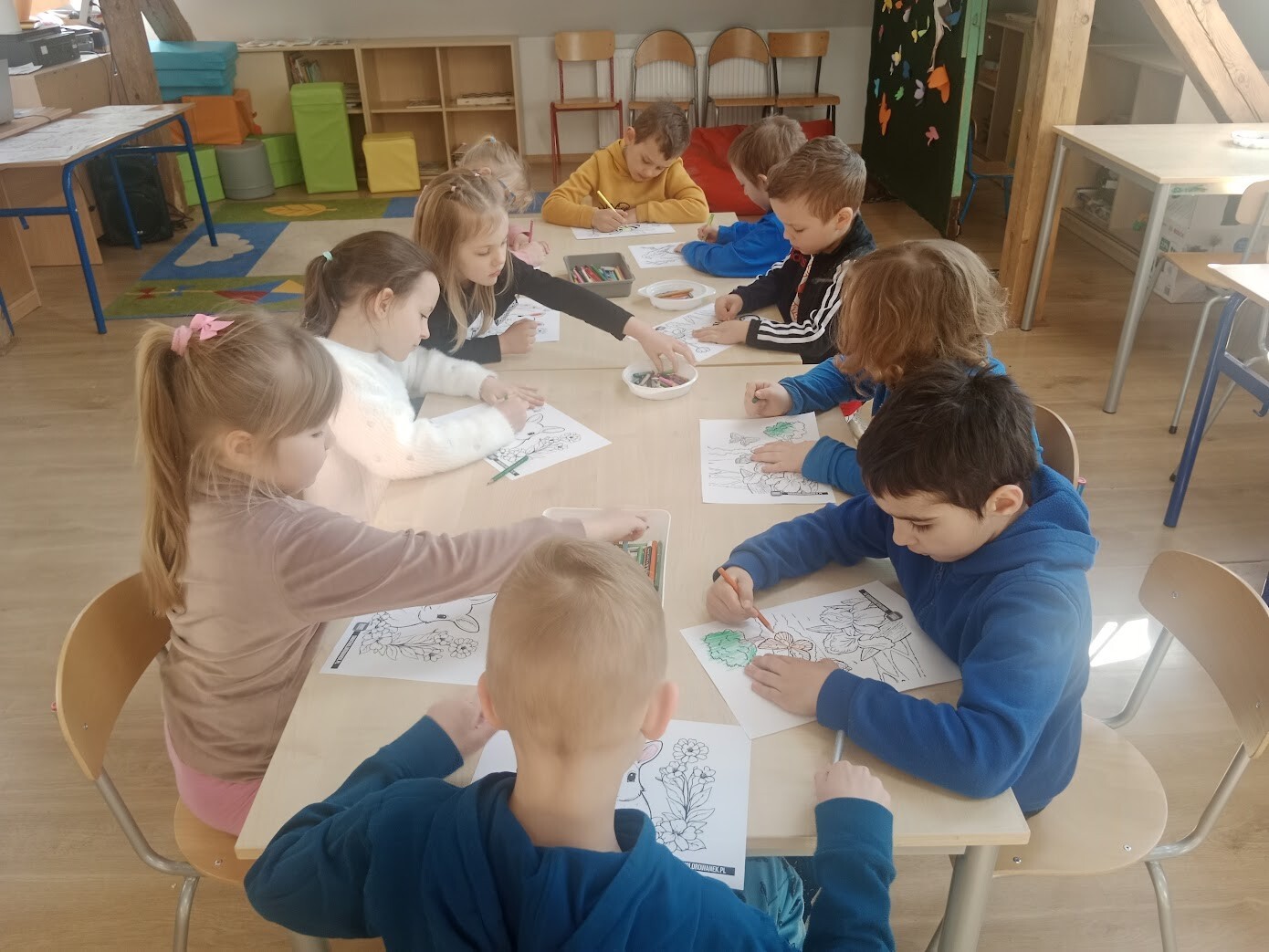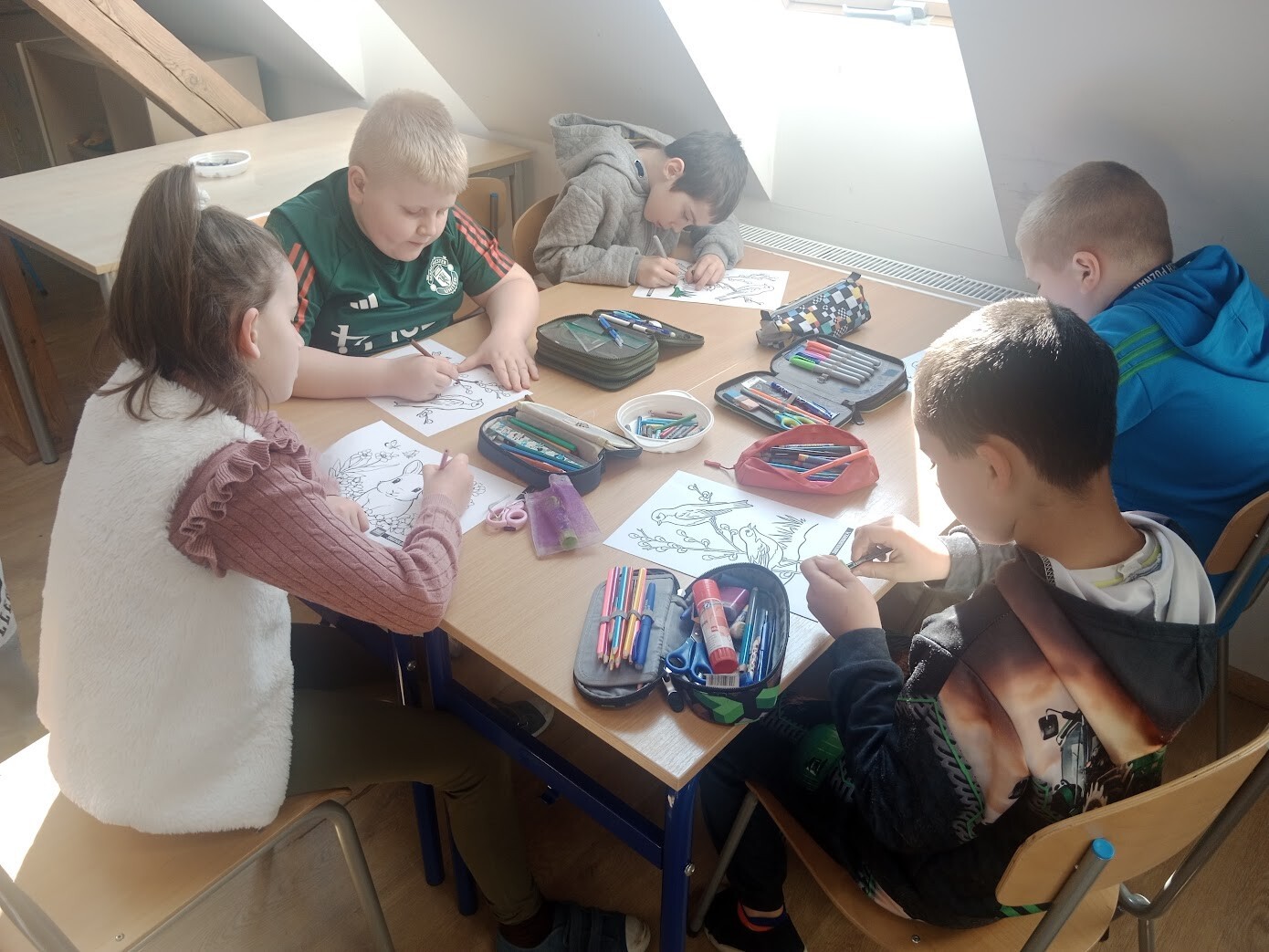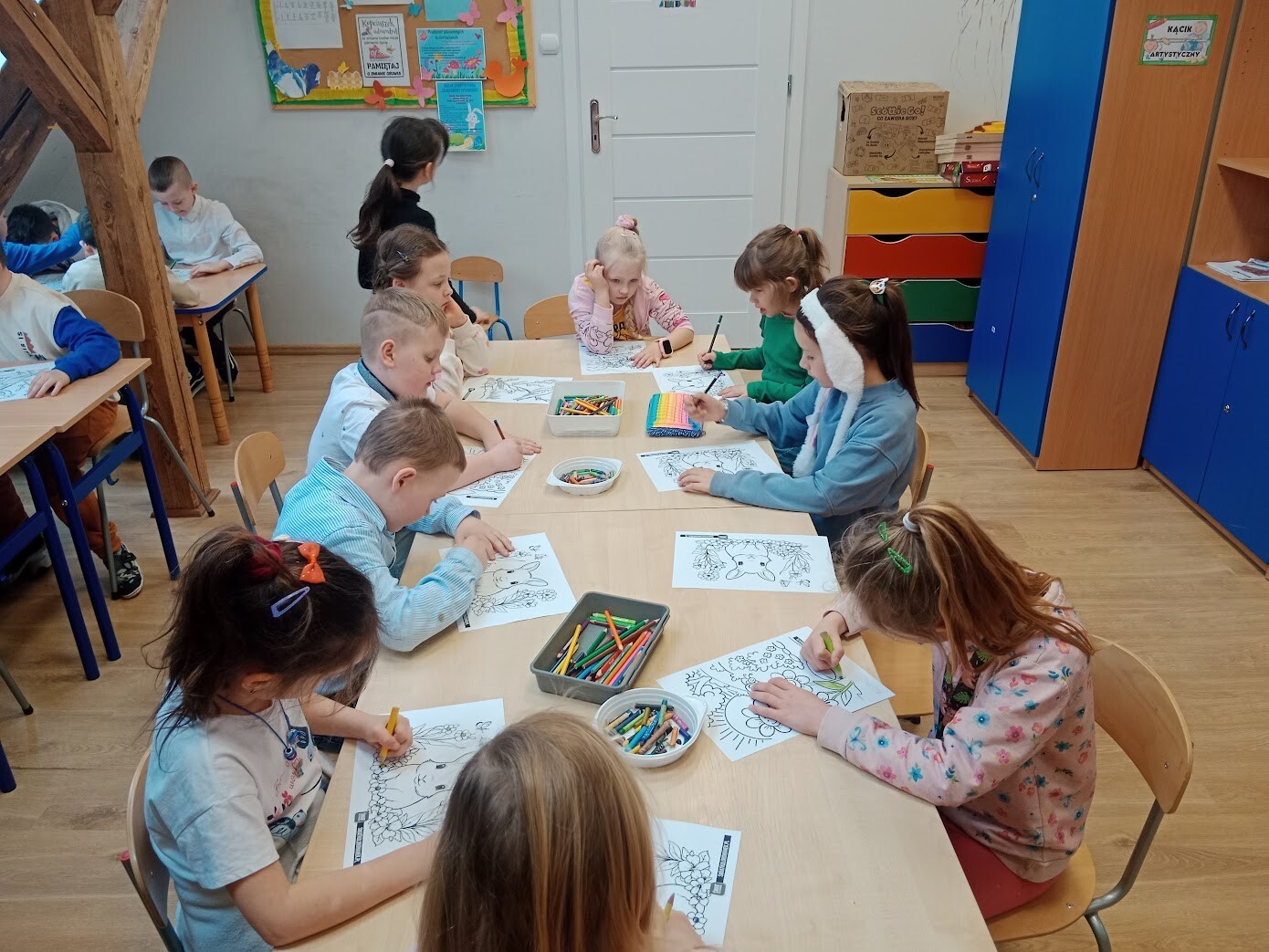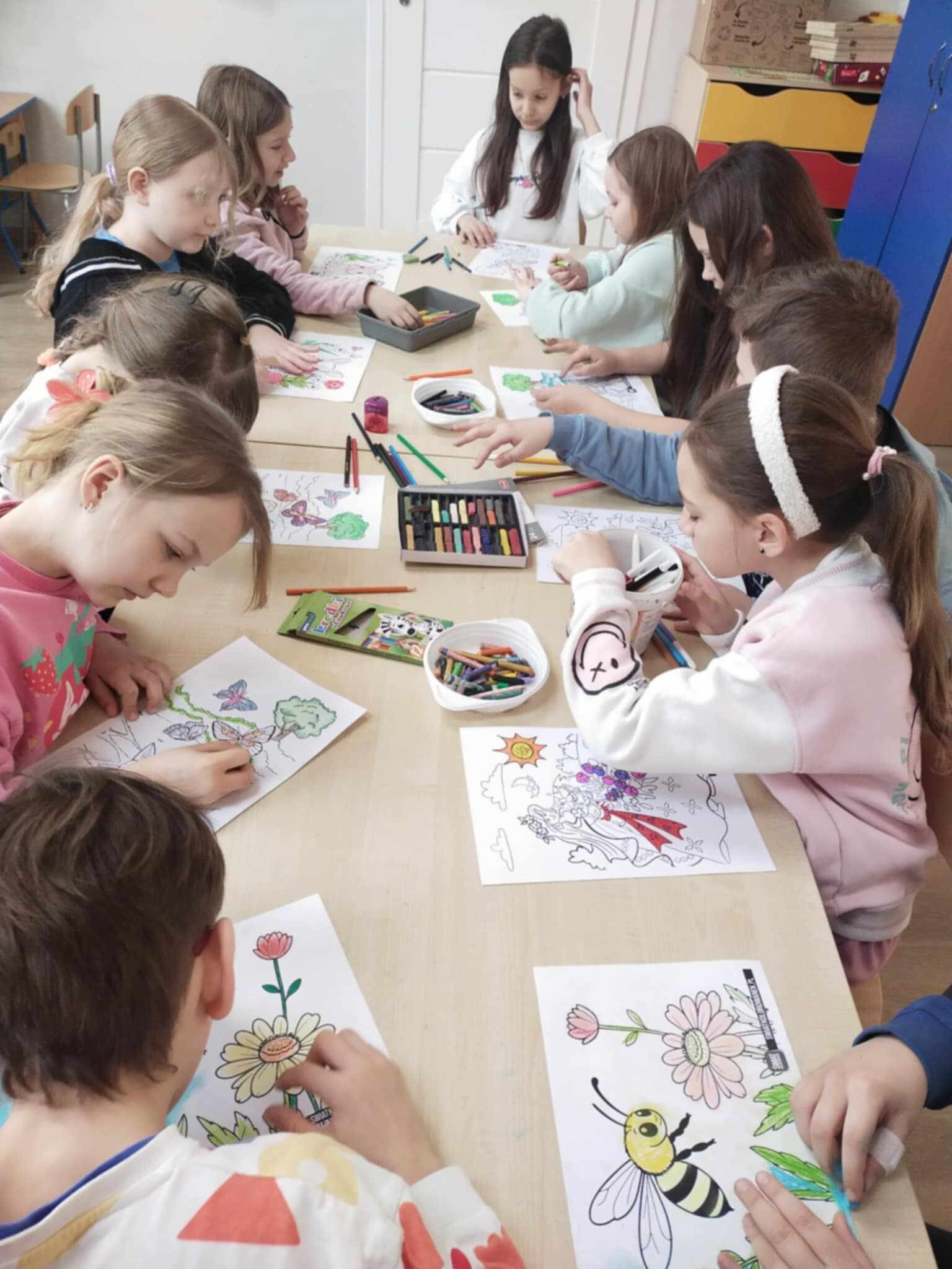 Na początku zeszłego tygodnia najmłodsi uczniowie naszej szkoły wzięli udział w Wiosennym Festiwalu Kolorowanek w świetlicy szkolnej. Dzieci z oddziału przedszkolnego i klas I - IV wybierały kolorowanki o tematyce wiosennej według własnych upodobań. Musiały wykazać się precyzją i odpowiednim doborem kolorów.