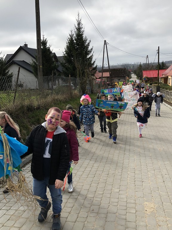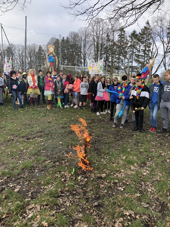 Z wielką radością 22 marca powitaliśmy wiosnę. Już od rana w szkole mogliśmy podziwiać oryginalne fryzury i wiosenne stroje. Uczniowie mieli okazję, aby wykazać się kreatywnością i spędzić ten dzień inaczej niż zwykle. W hali sportowej pani Marta Miotk i pani Joanna Browka rozstrzygnęły konkurs na najciekawsze kreacje wiosenne. Potem wszyscy w barwnym korowodzie z marzannami w rękach i transparentami przeszli ulicami Zaleskich na boisko wiejskie, gdzie jedna ze słomianych kukieł symbolizujących zimę została spalona. Humor dopisywał wszystkim, entuzjazm udzielił się także napotkanym w drodze mieszkańcom Zaleskich i okolic. I nic dziwnego, tego dnia pogoda dopisała. Powiał ciepły, wiosenny wiatr. Teraz pora na mocniejsze promienie słońca i pąki na drzewach. Bociany podobno już przyleciały …