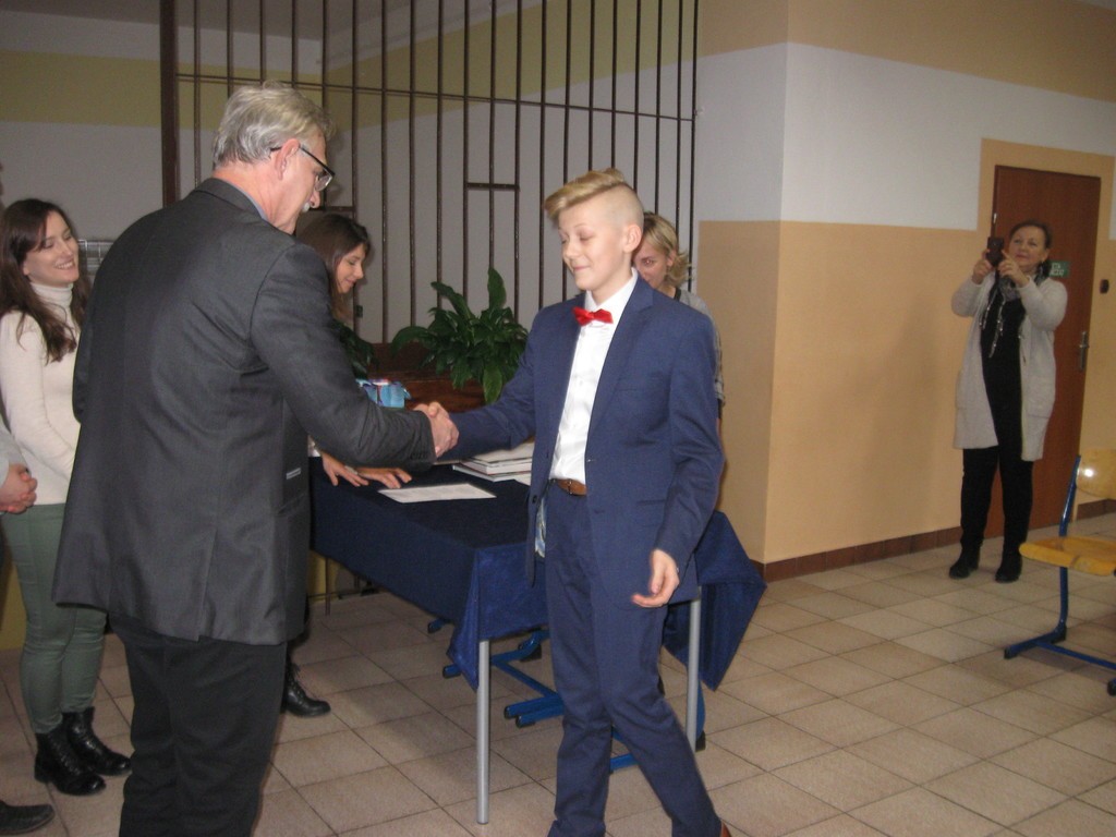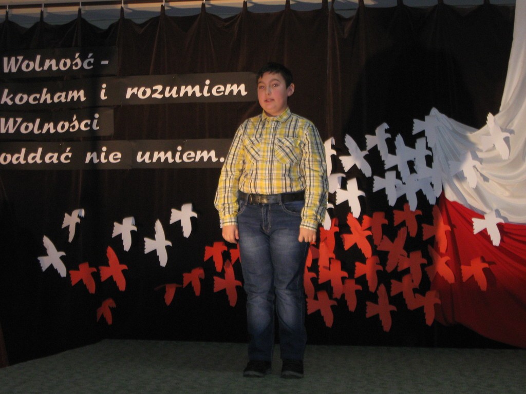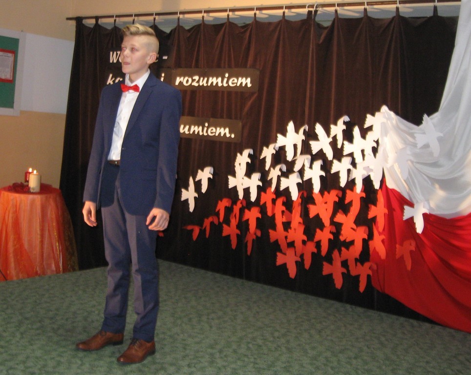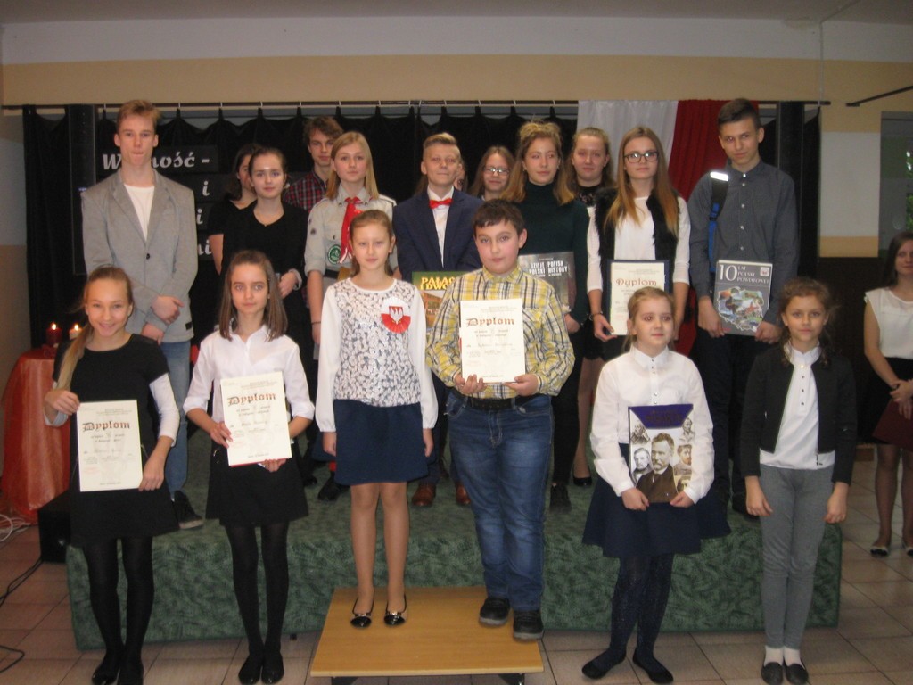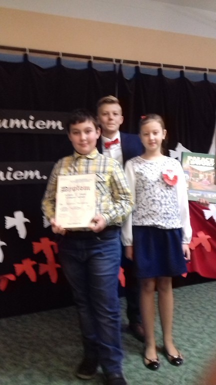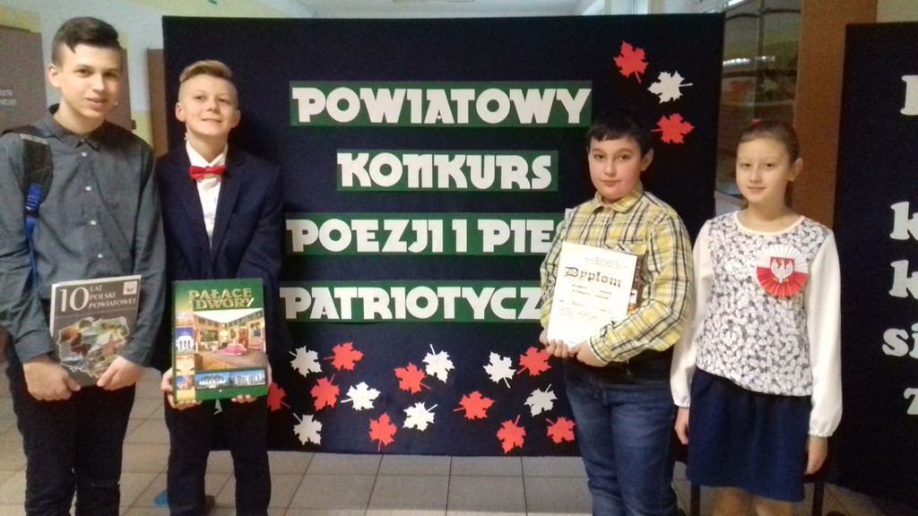 Tradycją stało się już, że późną jesienią najlepsi recytatorzy oraz wokaliści spotykają się, by wziąć udział w Powiatowym Konkursie Poezji i Pieśni Patriotycznej w Objeździe. Okres ten sprzyja zadumie i refleksji, przywołuje z pamięci bolesne wydarzenia z historii naszego narodu. Wiersze i pieśni powstałe w tych trudnych czasach są częścią naszej kultury oraz wyrazem myśli i marzeń Polaków. W bieżącym roku zmagania konkursowe odbyły się 25 listopada. Recytatorzy z naszej szkoły wypadli świetnie. Kacper Bokacz nie miał sobie równych - zdobył I miejsce. Jego piękna recytacja wiersza Mariana Hemara „Modlitwa” poruszyła serca jury. Radomir Sokołowski zdobył III miejsce, zaś Łukasz Bartyzel w kategorii „śpiew” otrzymał wyróżnienie. Gratulacje dla nagrodzonych.