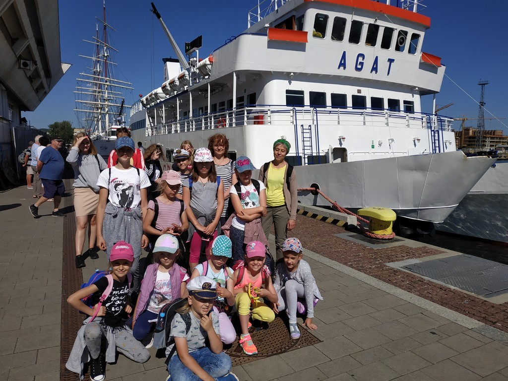 To niebywały sukces! Na Wojewódzki Festiwal Piosenki Marynistycznej ,,ŁAJBA 2019” w Słupsku, który odbył się w marcu, pojechały dwa zespoły wokalne z naszej szkoły: ,,MININUTKI” (uczniowie kl. I-III) oraz ,,PÓŁNUTKI” (kl. IV-VIII) przygotowane przez panią Urszulę Tamulis. Maluchy zachwyciły jury swoim śpiewem i tańcem przedstawiającym pracę marynarzy na morzu. Głośnym piskiem wyraziły swoją radość, kiedy ogłoszono, że otrzymały I miejsce. Jeszcze większa wrzawa zapanowała, kiedy okazało się, że ich starsze koleżanki również wyśpiewały I miejsce. Akompaniowały im harcerki z 15 ADH ,,Muszelki’’, z którymi są zaprzyjaźnione. Oba zespoły wraz z akompaniatorkami i opiekunką panią Urszulą Tamulis zostały zaproszone na rejs statkiem po Bałtyku. Główną nagrodę festiwalu ufundował Prezes Żeglugi Gdańskiej, aby najlepsi wokaliści festiwalu mogli sami doświadczyć tego wszystkiego, o czym tak pięknie śpiewali. Wymarzony rejs odbył się dnia 14 czerwca 2019r. katamaranem ,,AGAT’’ na trasie GDYNIA – HEL – GDYNIA pod opieką nauczycielek pani Urszuli Tamulis i pani Ewy Serafin oraz mamy uczennicy - pani Agnieszki Rękawek. Przepiękna pogoda, ciekawe widoki i możliwość zwiedzenia portu w Gdyni i w Helu sprawiły, że wrażenia były niesamowite. Dodatkową atrakcją stała się wizyta w Narodowym Muzeum Morskim, w Oddziale Muzeum Rybołówstwa w Helu. Dzieci były zdyscyplinowane, radosne, a starsze uczennice chętnie opiekowały się maluchami. Mimo upału i przedłużonego czasu wycieczki z powodu awarii pociągu na trasie Gdynia – Słupsk, wszyscy wrócili bardzo zadowoleni. Przywieźli nie tylko pamiątki i zdjęcia, ale przede wszystkim niezapomniane wrażenia z pierwszego w życiu rejsu statkiem po Bałtyku. Wyrażamy serdeczne podziękowania organizatorom festiwalu ,,Łajba 2019’’ - Szkole Podstawowej nr 9 w Słupsku oraz fundatorom głównej nagrody - Żegludze Gdańskiej. Otrzymana nagroda motywuje do dalszej pracy artystycznej, zachęca do śpiewania szant, zwiedzania polskich portów morskich oraz żeglowania po wzburzonych wodach Bałtyku.