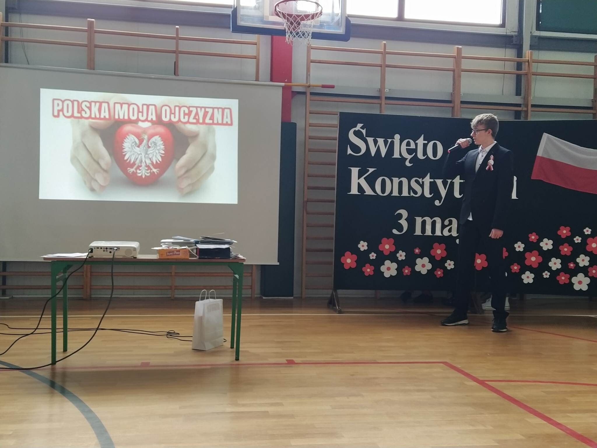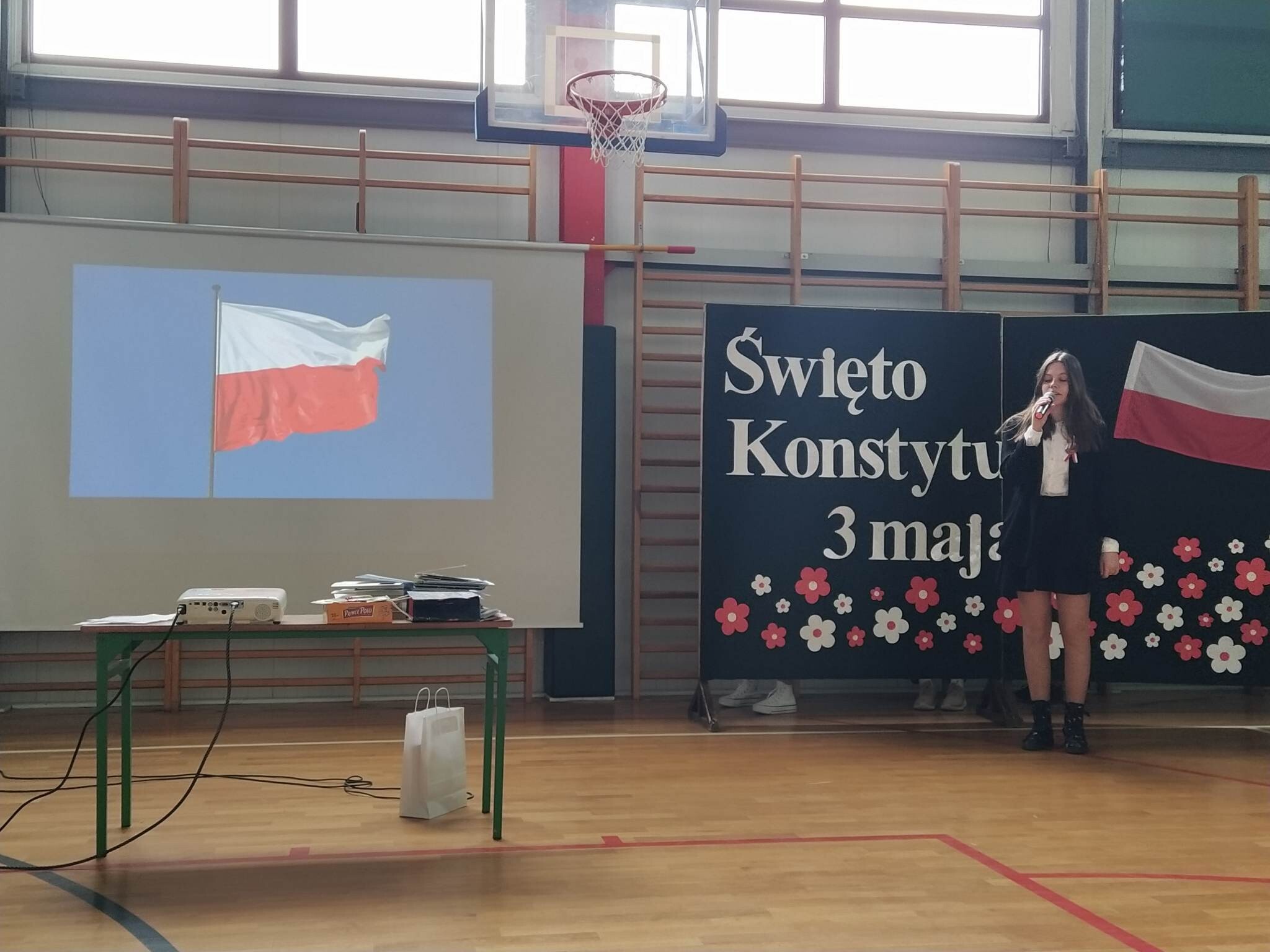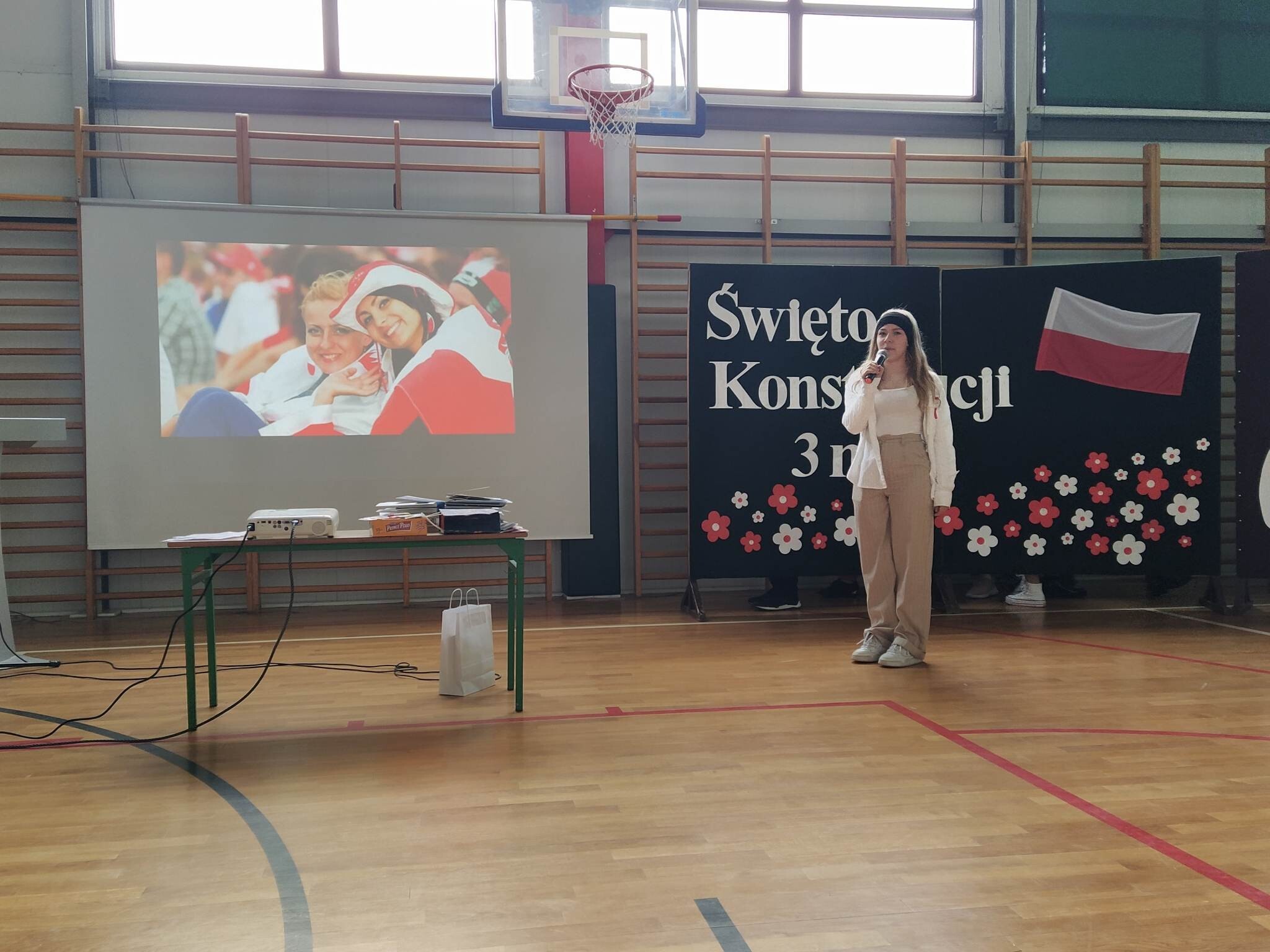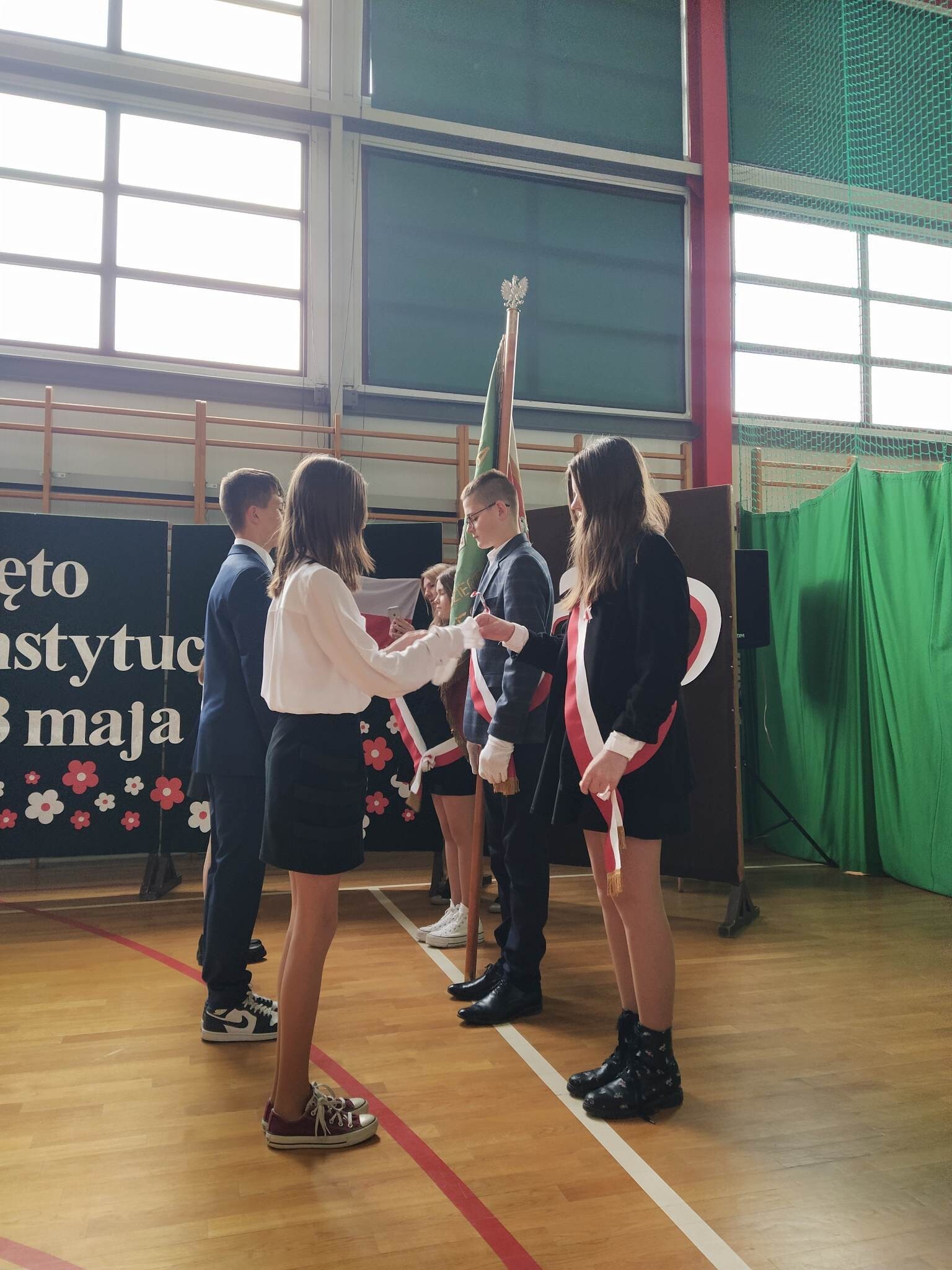 27 kwietnia w naszej szkole odbył się uroczysty apel upamiętniający 232. rocznicę uchwalenia Konstytucji 3 Maja. Na początku uroczystości głos zabrał pan dyrektor Zbigniew Bednarczyk, a po nim wystąpili się ósmoklasiści, przedstawiając krótką lekcję historii i patriotyzmu. Wszyscy uczestnicy w skupieniu i z powagą obejrzeli prezentację ukazującą wydarzenia historyczne i okoliczności powstania pierwszej polskiej konstytucji oraz wysłuchali recytacji znanych i lubianych wierszy. Wymownie i radośnie zabrzmiały pieśni patriotyczne w wykonaniu zespołu Mini Wiolinki oraz Leny Ziemskiej. Część artystyczna została przygotowana pod kierunkiem pana Adama Drapały oraz Janusza Werry. Odświętne stroje oraz wyeksponowane symbole narodowe podkreśliły podniosły charakter apelu. Podczas uroczystości nastąpiło przekazanie sztandaru szkoły młodszym uczniom.