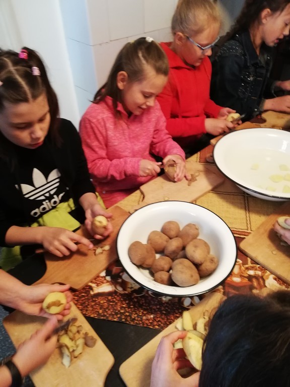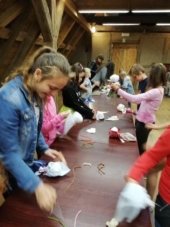 W przedostatni dzień maja uczniowie naszej szkoły w ramach lekcji języka kaszubskiego uczestniczyli w wycieczce do Muzeum Kultury Ludowej Pomorza w Swołowie. Tam wzięli udział w warsztatach dotyczących życia najmłodszych Pomorzan. Jak wyglądało dzieciństwo 100 lat temu? Jakie było miejsce dzieci w domu i w całej społeczności wiejskiej? Jakimi zabawkami dawniej się bawiły? To tylko niektóre pytania, które padły podczas zajęć. Odpowiedzi na nie okazały się bardzo interesujące. Uczniowie własnoręcznie wykonali lalki szmacianki na wzór tych, którymi bawiły się ich prababcie. Podczas lekcji muzealnej „Pokaż mi, co w garnku masz – co dawniej jadano na pomorskiej wsi?” ugotowali zupę kartoflankę oraz upiekli racuchy. Zarówno zupa, jak i placki były bardzo smaczne. Wszyscy uczestnicy zadowoleni wrócili do domów, a powstałe na zajęciach zabawki powędrowały na półki w pokojach.