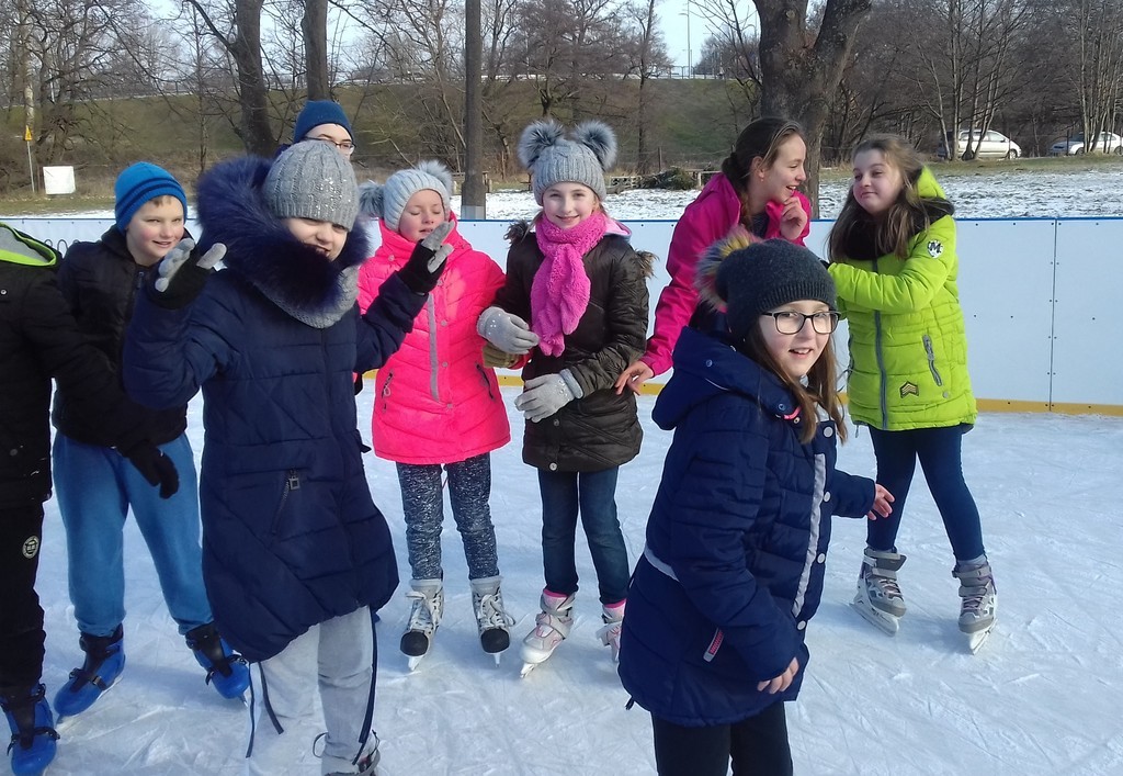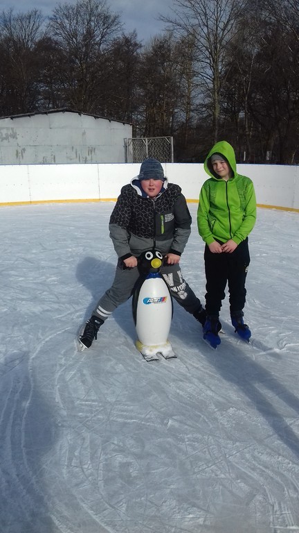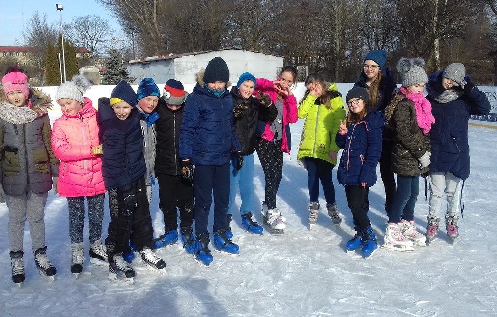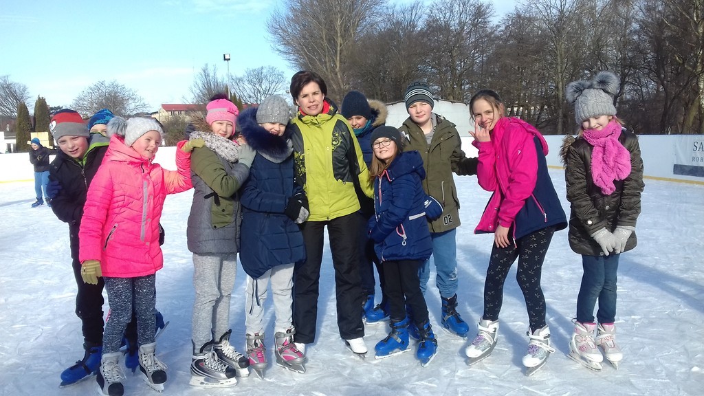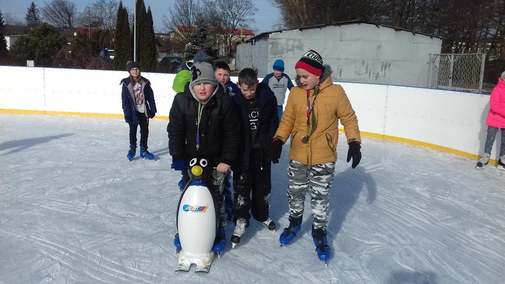 Jak wiele radości przynosi jazda na łyżwach, mogli się przekonać uczniowie z klas IV-VII naszej szkoły, którzy w lutym wraz nauczycielami wybrali się na lodowisko Centrum Kultury Gminy Ustka. Zdecydowana większość osób świetnie poradziła sobie z jazdą po lodzie. I nic dziwnego, gdyż w cieplejszych porach roku często jeżdżą na rolkach. Mniej zaawansowani mieli do dyspozycji pomocnika – pingwina, na którym mogli się oprzeć i wolno przemieścić do przodu. Nie obeszło się też bez upadków, na szczęście niegroźnych. Zdarzały się one nawet najlepszym. W końcu lód jest śliski, a hamowanie na nim nie należy do najłatwiejszych umiejętności. Śmiechu i radości było przy tym co niemiara. Z pewnością ta forma aktywności przypadła wszystkim do gustu. Integracja klasy oraz wyśmienita zabawa to argumenty, które przemawiają za tym, by zajęcia na lodowisku odbywały się częściej. Szkoda, że sezon zimowy powoli się kończy.