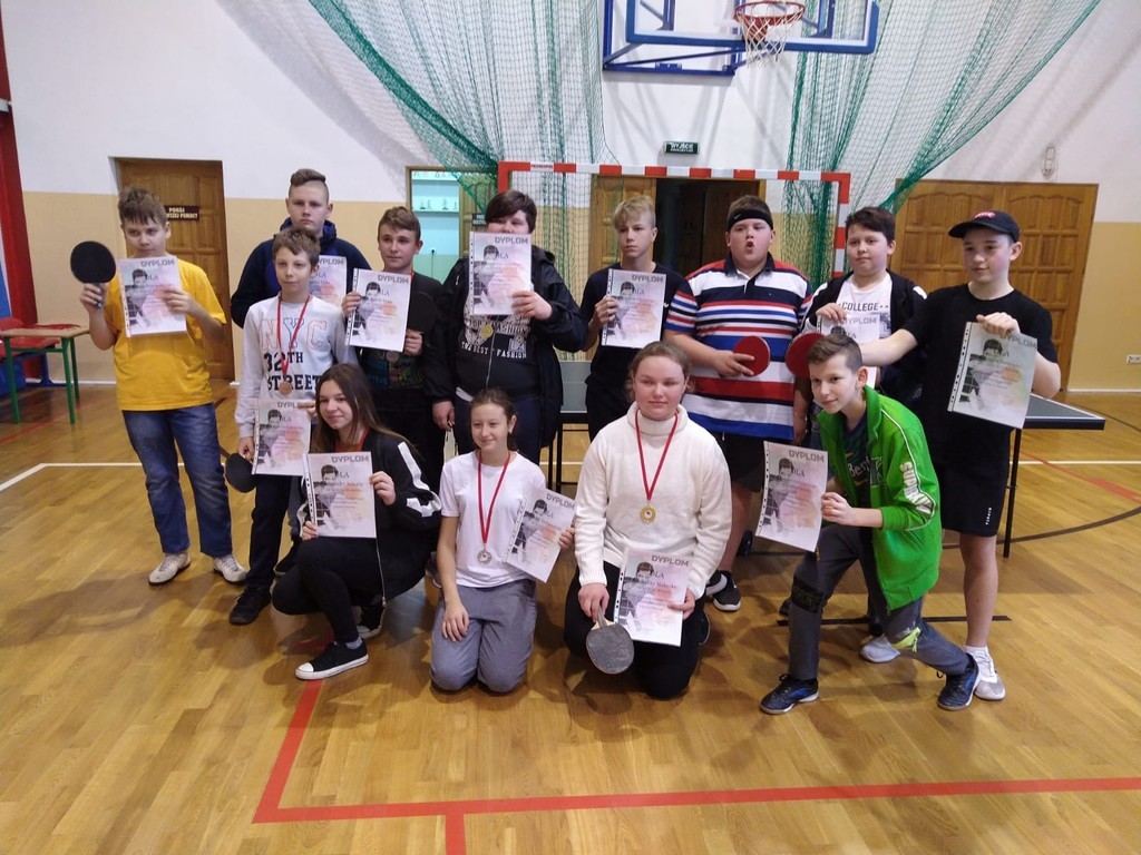 W dniu 27 listopada 2019 r. w naszej szkole odbyły się Mistrzostwa Gminy Ustka w tenisie stołowym. W turnieju wzięli udział zawodnicy ze Szkoły Podstawowej w Charnowie oraz ze Szkoły Podstawowej w Zaleskich. W kategorii chłopców nasi uczniowie zdobyli kolejno 4., 7., 9. i 10. miejsce, najwyższe Kacper Strzałba. Natomiast w kategorii dziewcząt Karina Grabowska zajęła 2., zaś Aleksandra Schutta – 3. miejsce. Wszystkim uczestnikom zawodów serdecznie gratulujemy i życzymy dalszych sukcesów.
