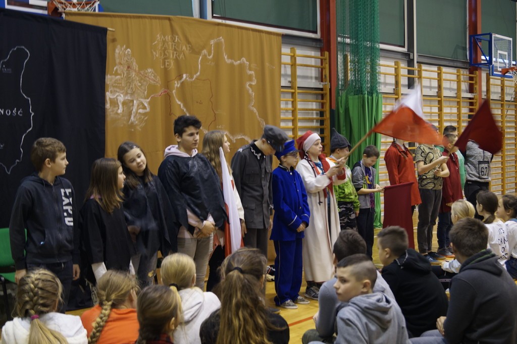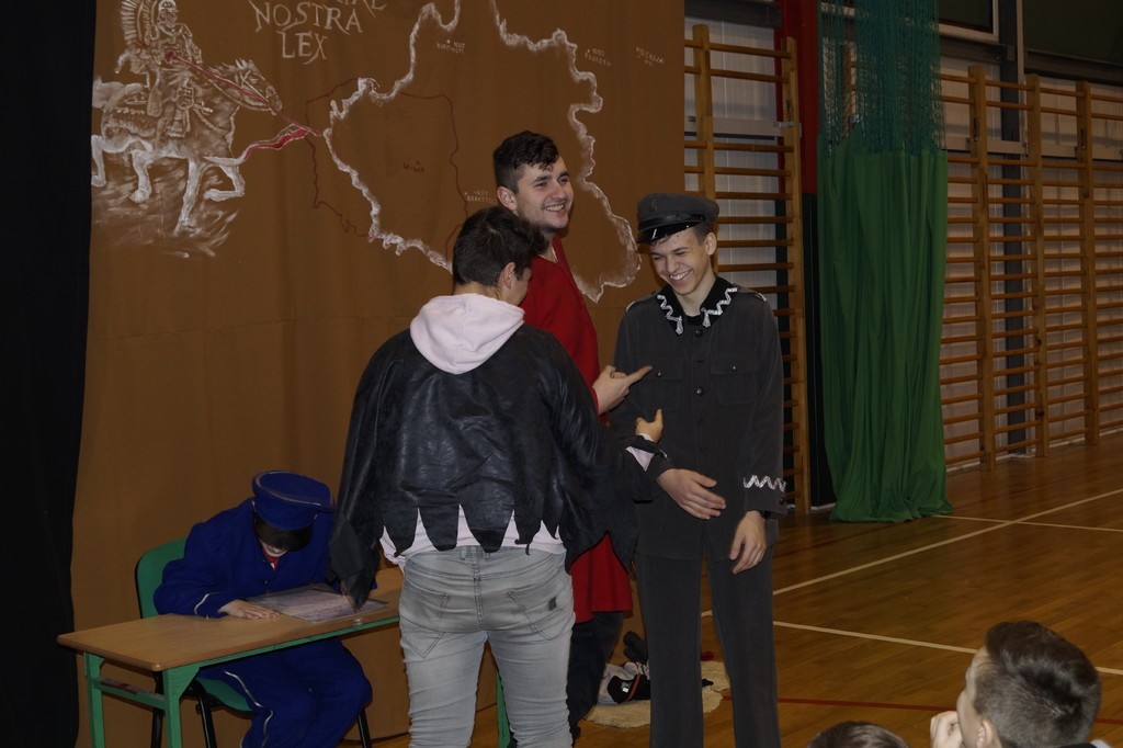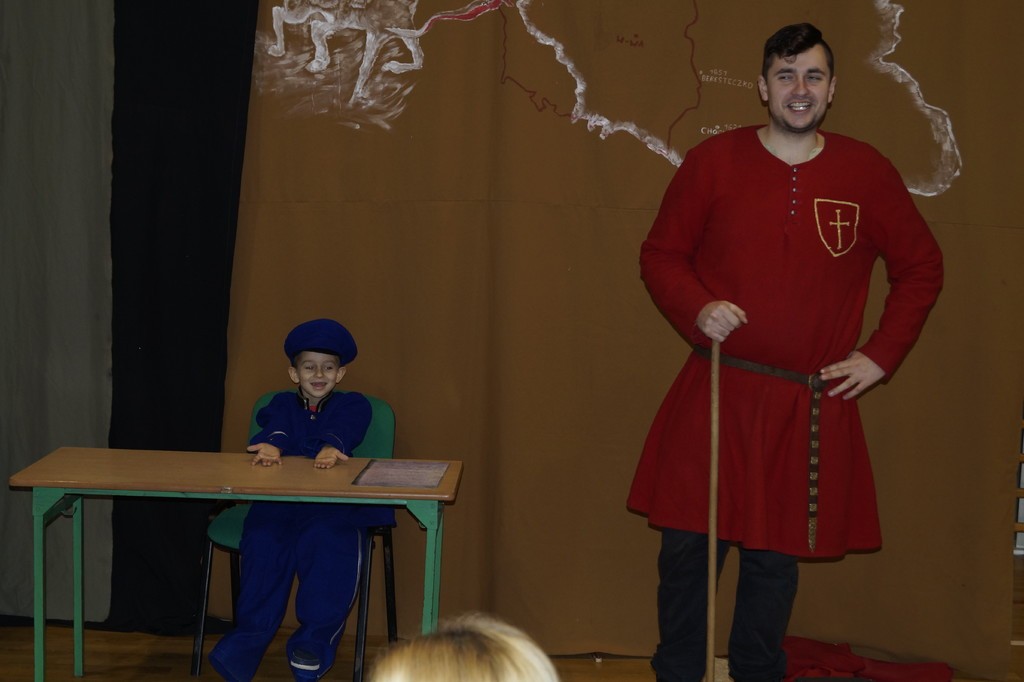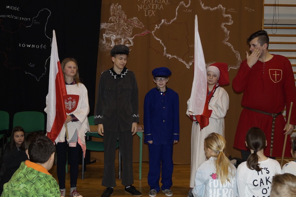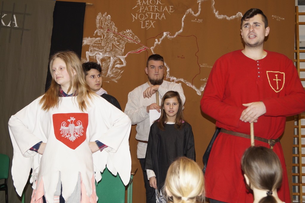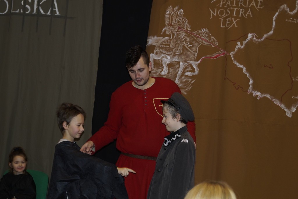 29 stycznia naszą szkołę po raz kolejny odwiedzili przedstawiciele Bractwa Rycerskiego KERIN. Goście poprowadzili nas przez trudną, a zarazem ekscytującą historię Polski. W sposób bardzo zajmujący, angażując do współpracy wielu uczniów, przybliżyli wiedzę na temat zaborów, Konstytucji 3 Maja, zrywów narodowowyzwoleńczych oraz postaci, które miały wpływ na odzyskanie niepodległości przez naszą ojczyznę. Dowiedzieliśmy się także, od kiedy biały orzeł stał się polskim godłem. Okazało się, że było to za czasów Przemysława II. Najbardziej jednak podobał się wszystkim udział uczniów w odgrywaniu scenek nawiązujących do wydarzeń historycznych. Dużo znanych i nieznanych informacji podanych ze sporą dozą humoru z pewnością zapadnie w pamięci nawet tych, którzy na co dzień nie interesują się historią. Dodatkowy przekaz dla wszystkich był jasny: nie wolno nam (rodzeństwu, kolegom, sąsiadom – szerzej Polakom) kłócić się, bo jak pokazuje historia, zawsze prowadziło to do poważnych problemów, włącznie z upadkiem niepodległości przez Polskę.
